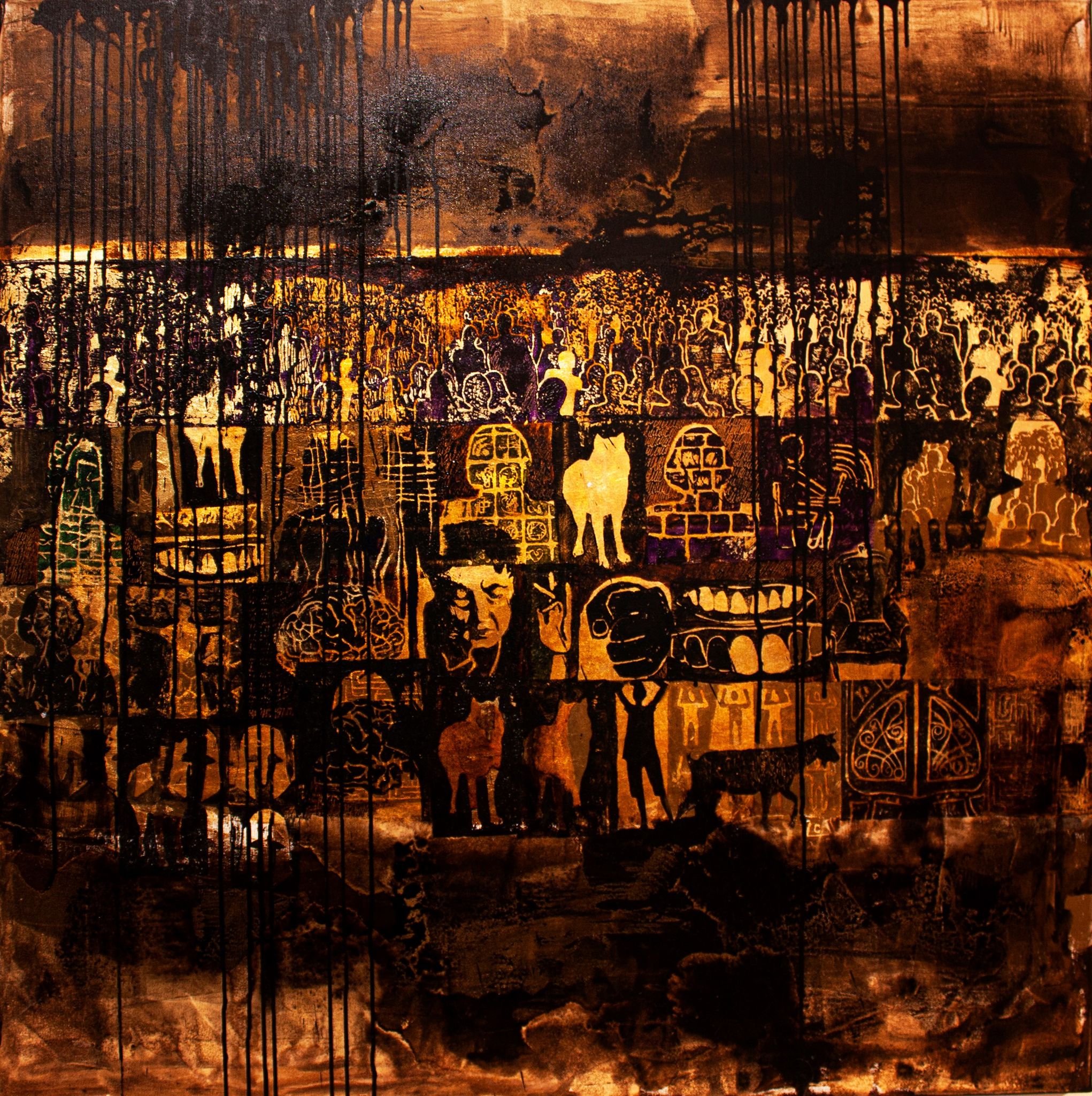 Artista Mihaela Tătulescu, cadru didactic la Facultatea de Arte Oradea, a câștigat premiul cu pictura „Oameni și lupi“, o lucrare despre izolarea spirituală a individului, dar care își caută resurse să supraviețuiască într-o lume limitată, aflată într-un dezechilibru provocat de o realitate necontrolabilă.