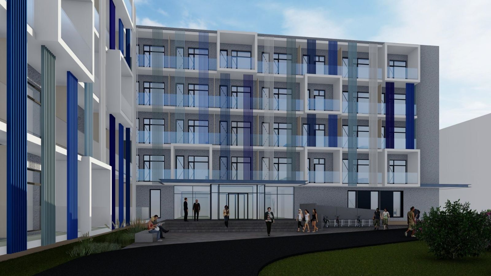 Clădirea va avea o suprafață desfășurată de 16.382 mp, un regim de înălțime cu parter, 4 etaje și un etaj tehnic, prevăzut cu spații comune precum săli de lectură, oficiu cu sală de mese și spălătorie, și spații administrative. Clădirea va fi dotată cu 3 ascensoare, iar acoperișul verde va avea un rol de protecție atât împotriva pătrunderii căldurii, cât și împotriva pierderii acesteia în perioada rece. Acoperișul va avea și un spațiu de recreere pentru studenți amenajat cu plante și spațiu pentru luat masa.