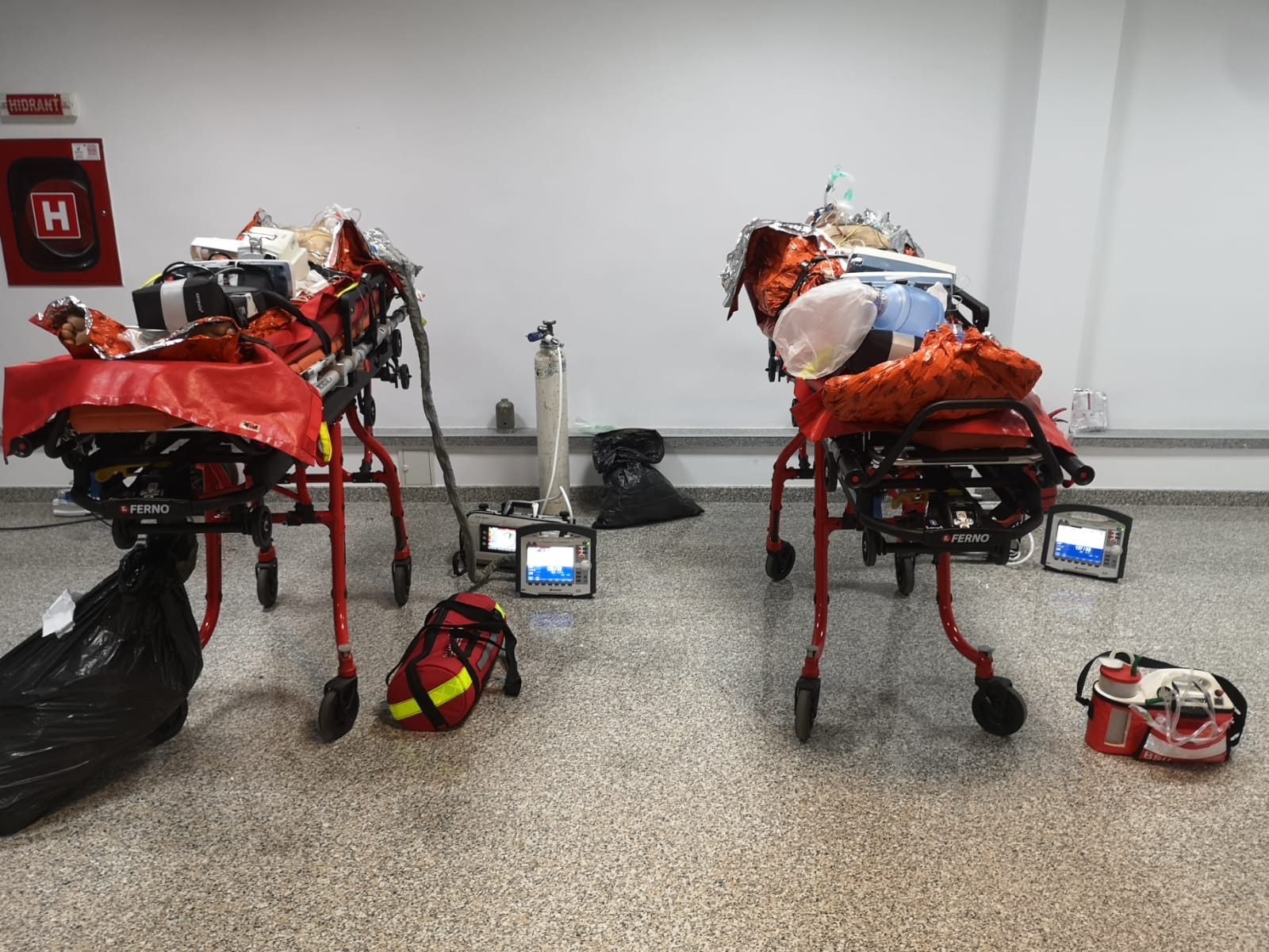 Trei medici, trei asistenți și trei paramedici au evaluat starea celor cinci bolnavi și le-au acordat, după caz, tratament intermediar în așa fel încât starea acestora să fie stabilă și să permită transportul terestru.