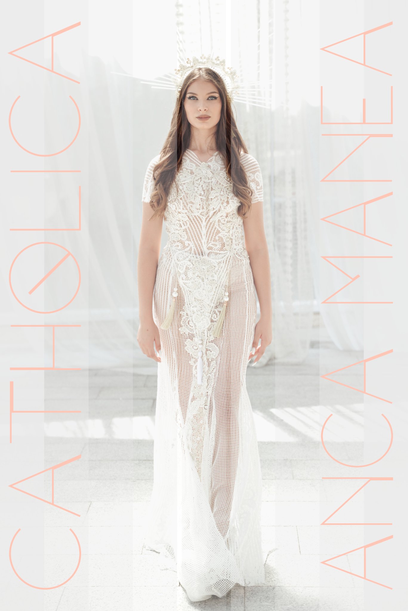 Cum colecția e inspirată de costumele papale în Catholica predomină albul. Rezultatul: o colecție unică. Designeru orădean a preluat elemente distincte ecleziastice, le-a prelucrat și le-a transpus într-o colecție de rochii de mireasă.