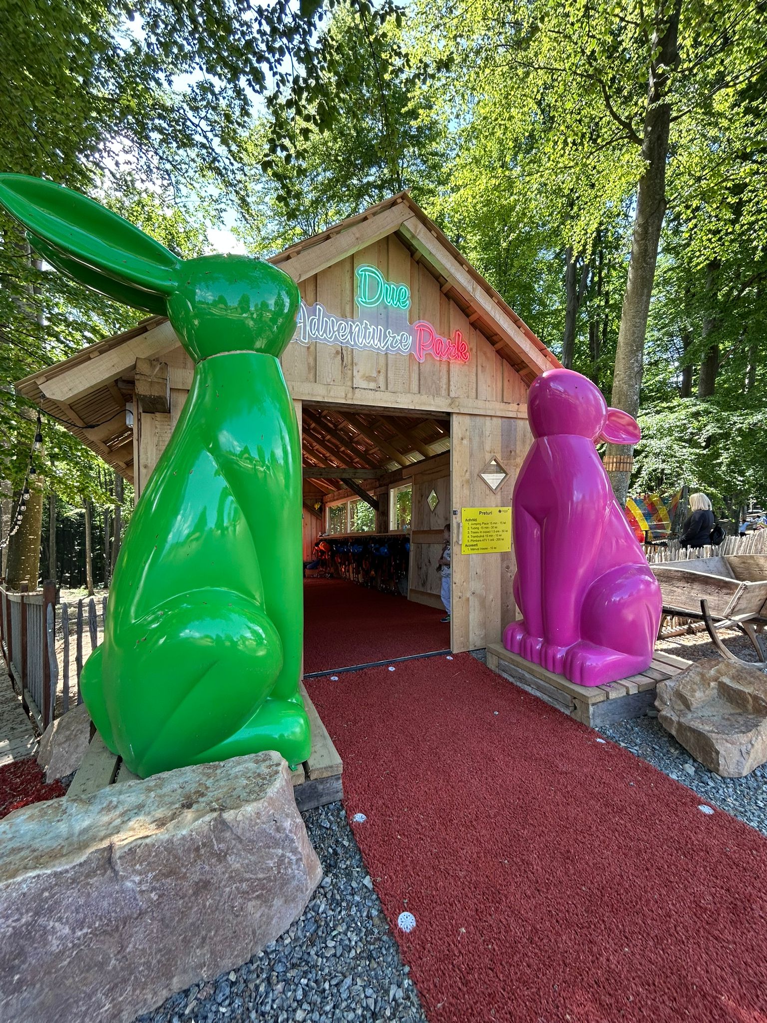 Toți iubitorii de adrenalină, care vor să aibă parte de experiențe inedite și de relaxare în aer liber, pot să vină și să încerce cele 3 trasee de aventură (două pentru copii și unul pentru adulți) și alte surprize, cum ar fi tubing cu colace, jumping place și animalele colorate! Programul parcului de aventură, Due Adventure Park este sămbătă și duminică, între orele 11:00 și 19:00! De luni până vineri se deschide doar la grupuri de peste 20 de persoane!