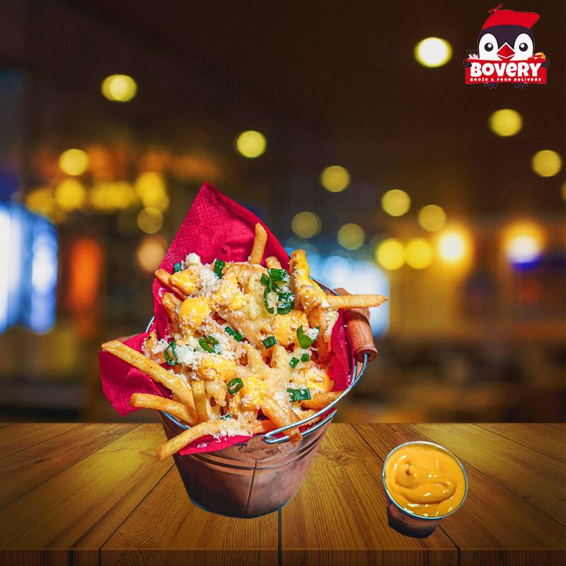 Cheezy Fries – cartofi prăjiţi, mozzarella, sos cheddar, parmezan, ceapă verde – 31 RON 400g.