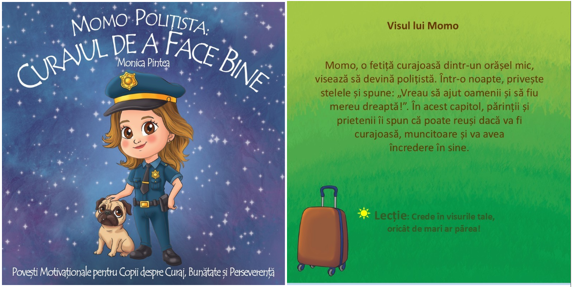 „Experiențele personale m-au inspirat să creez o serie de povești care să-i ajute pe cei mici să crească încrezători, empatici și curajoși. Aceasta este prima mea carte și mi-aș dori să fie începutul unei serii motivaționale pentru copii”, spune Monica Pintea.