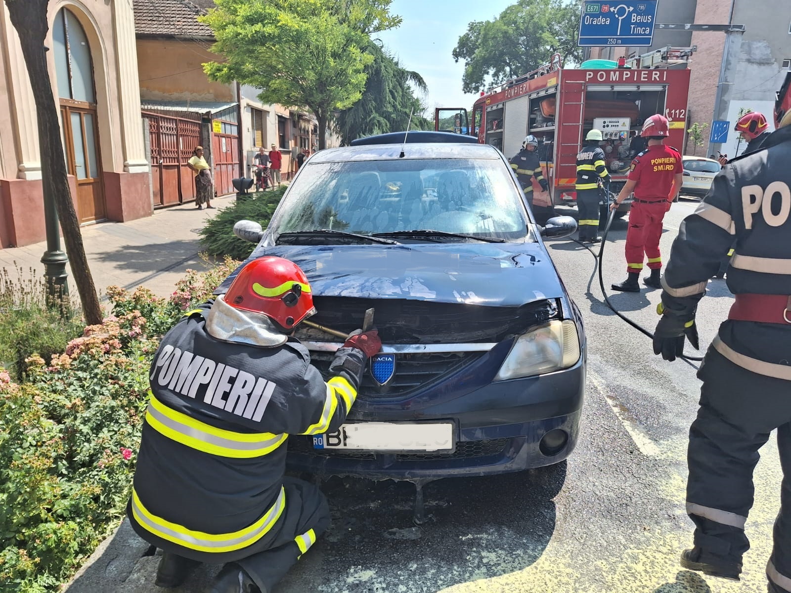 În jurul orei 11:50, Inspectoratul pentru Situații de Urgență “Crișana” al județului Bihor a fost sesizat cu privire la producerea unui incendiu la un autoturism parcat pe strada Republicii din Salonta.