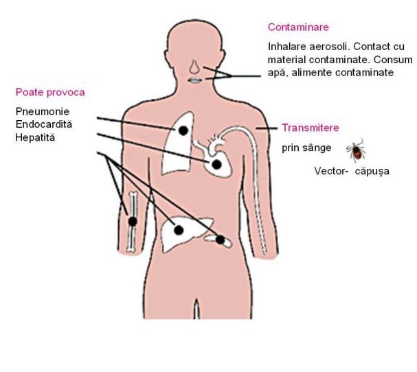 O altă sursă de infecţie o constituie consumul de lapte nepasteurizat. Insectele hematofage, sau unele leziuni cutanate superficiale existente la manipulatorii de animale pot fi implicate în producerea bolii.