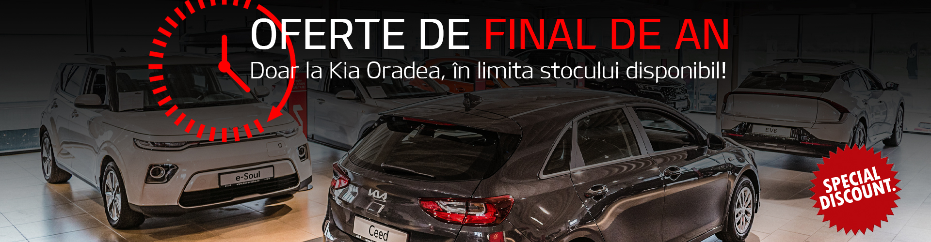 Beneficiază de discount-uri speciale valabile exclusiv la Kia Oradea, dar grăbește-te: oferta este disponibilă doar până pe 31 decembrie 2024, în limita stocului disponibil! www.kiapromo.ro