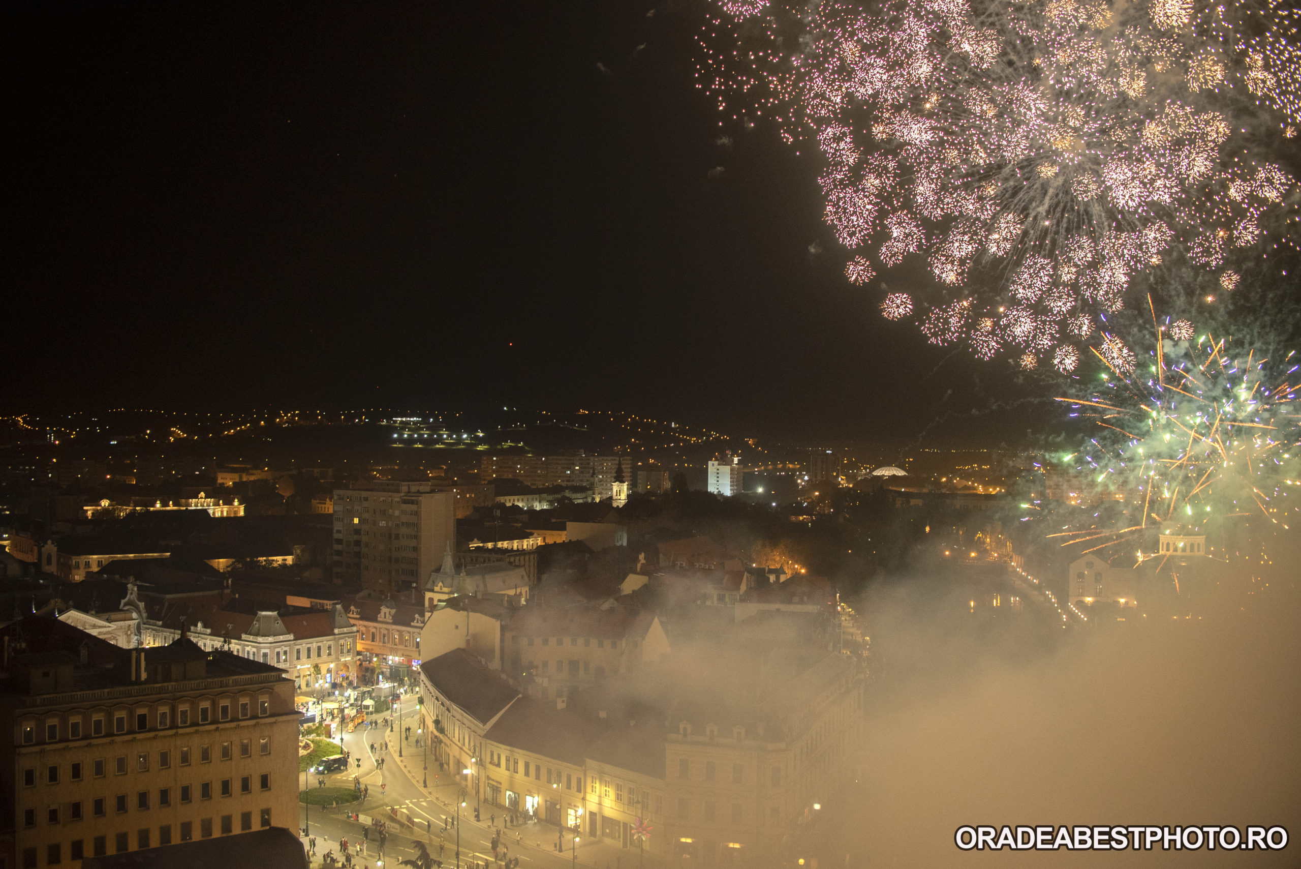 Sâmbătă şi duminică, cei prezenţi în Piaţa Unirii au admirat un spectacol de video mapping rezumând 100 de ani de istorie. Oferite de Oradea Heritage, succesiunea de imagini proiectate pe Palatul Vulturul Negru a evocat cele mai importante simboluri ale regalității: coroanele, sceptrul și mantiile regale, sărbătorind centenarul încoronării.