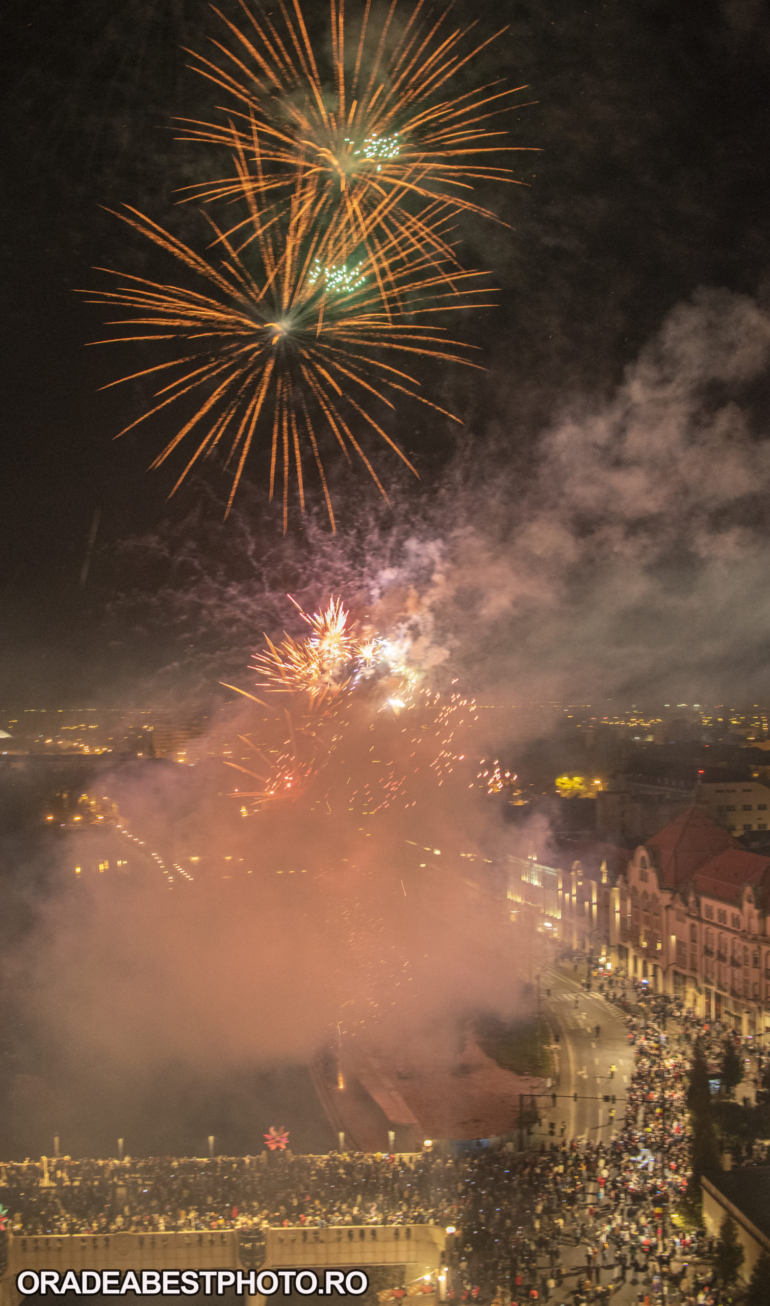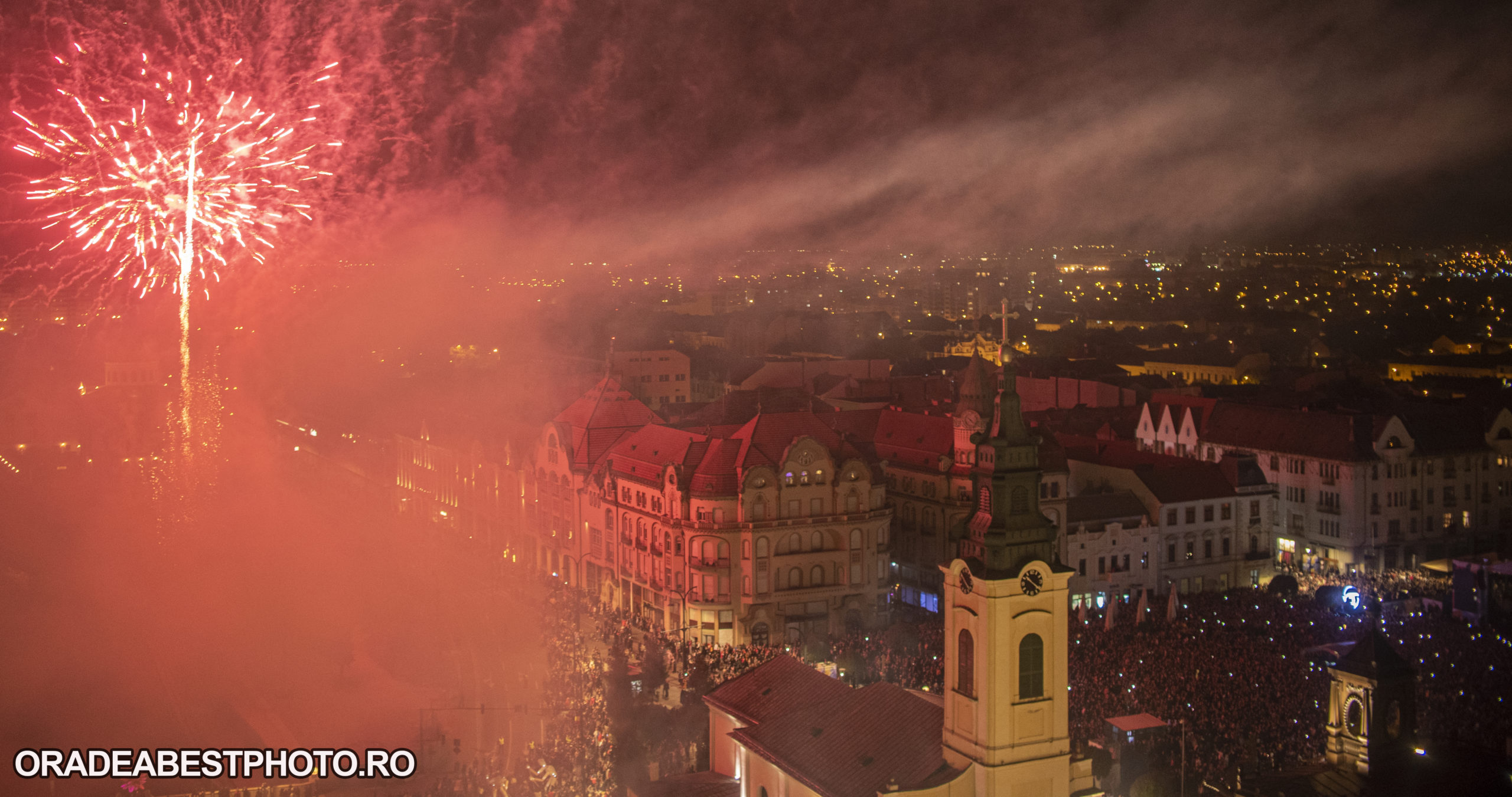 Sâmbătă şi duminică, cei prezenţi în Piaţa Unirii au admirat un spectacol de video mapping rezumând 100 de ani de istorie. Oferite de Oradea Heritage, succesiunea de imagini proiectate pe Palatul Vulturul Negru a evocat cele mai importante simboluri ale regalității: coroanele, sceptrul și mantiile regale, sărbătorind centenarul încoronării.