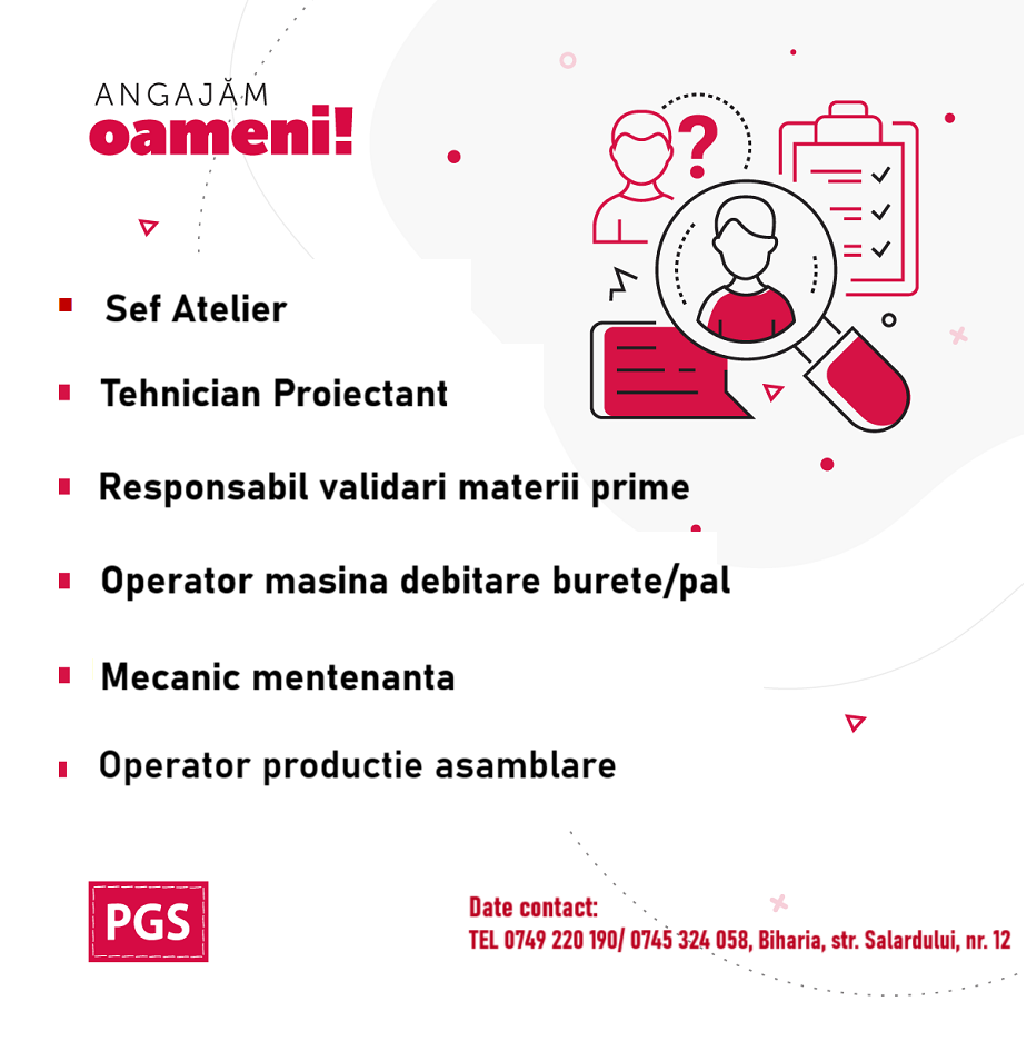 - Șef atelier – 4 posturi (studii superioare, minimum un an experiență)