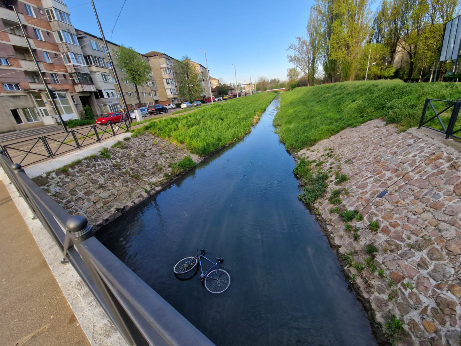 „Conflictul” mocnit dintre pietonii și bicicliștii orădeni pare că a ajuns la un nou nivel. O bicicletă a ajuns în Peța, aruncată de pe podul din Cantemir, imediat lângă pistele velo.