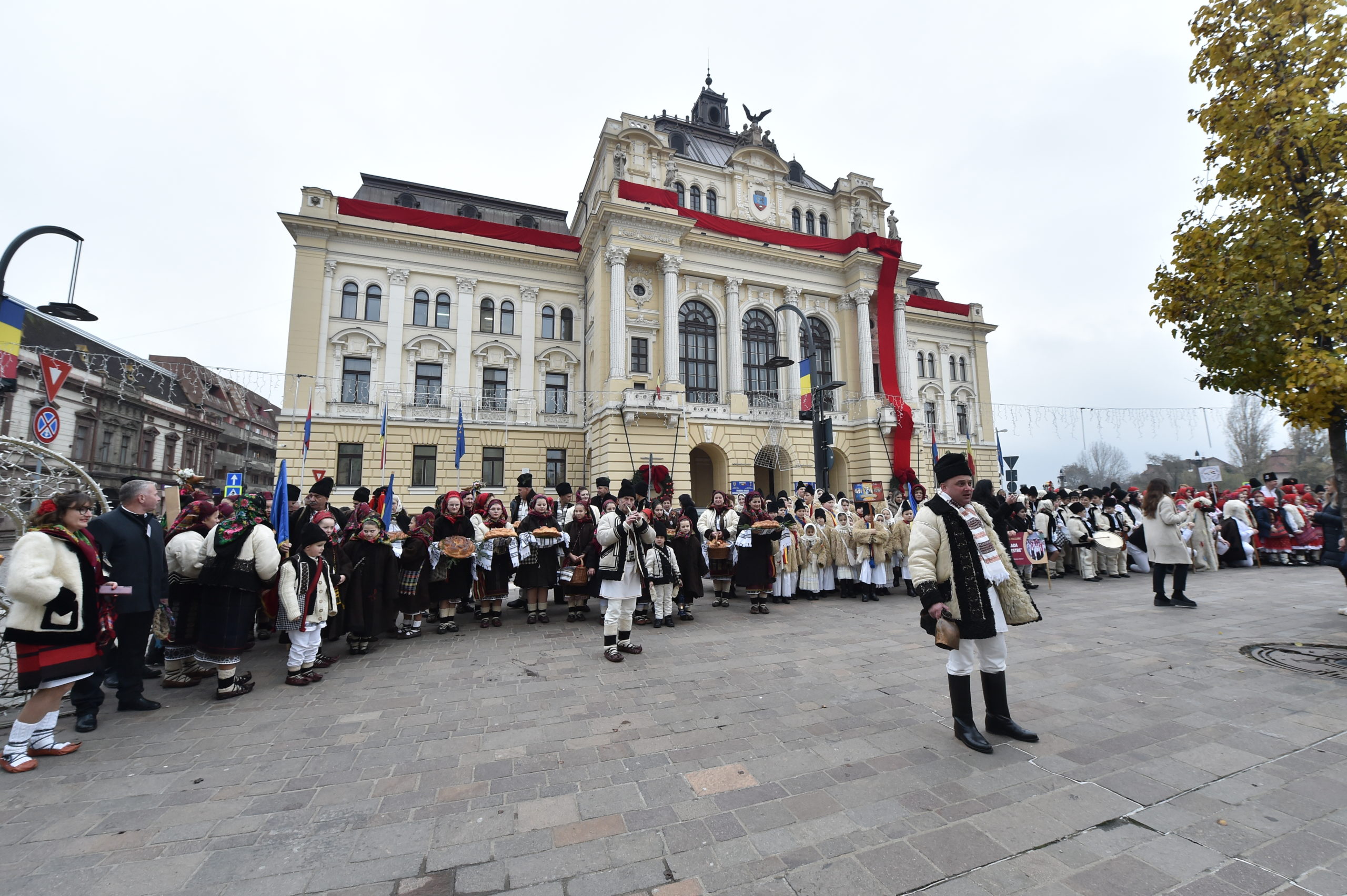 Îmbrăcați în porturi populare autentice, din diferite zone ale țării, cu colaci în mâini și cu obrajii îmbujorați, de la mic la mare au cântat colinde și au recitat din versuri tradiționale, spre bucuria trecătorilor și ai angajaților instituțiilor care s-au adunat să îi întâmpine.