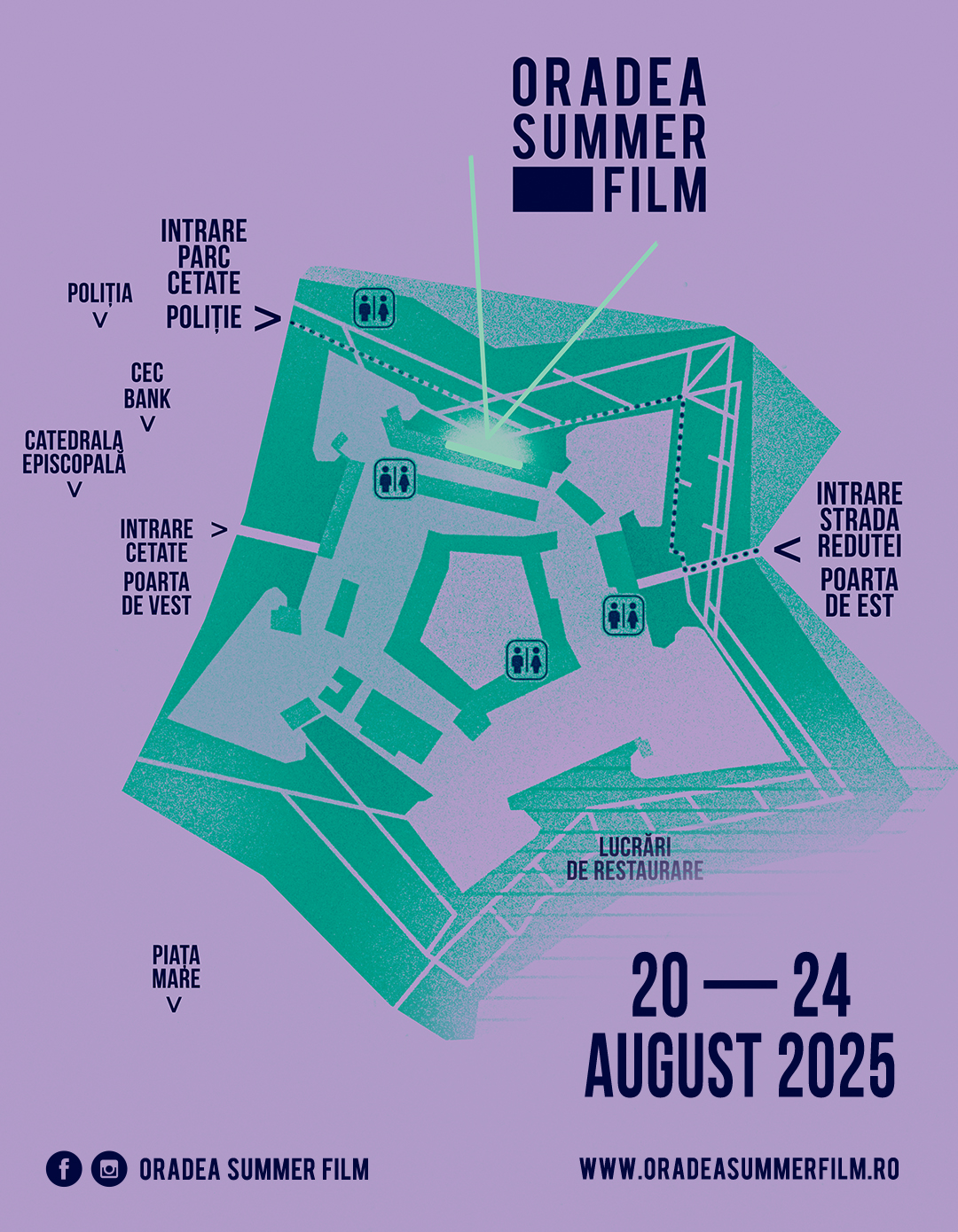 *În cazul unor avertizări meteo de vreme nefavorabilă, proiecțiile programate pentru serile în cauză se vor anula. Informația va fi transmisă pe pagina de Facebook și Instagram Oradea Summer Film, precum și în evenimentul dedicat Oradea Summer Film 2025.