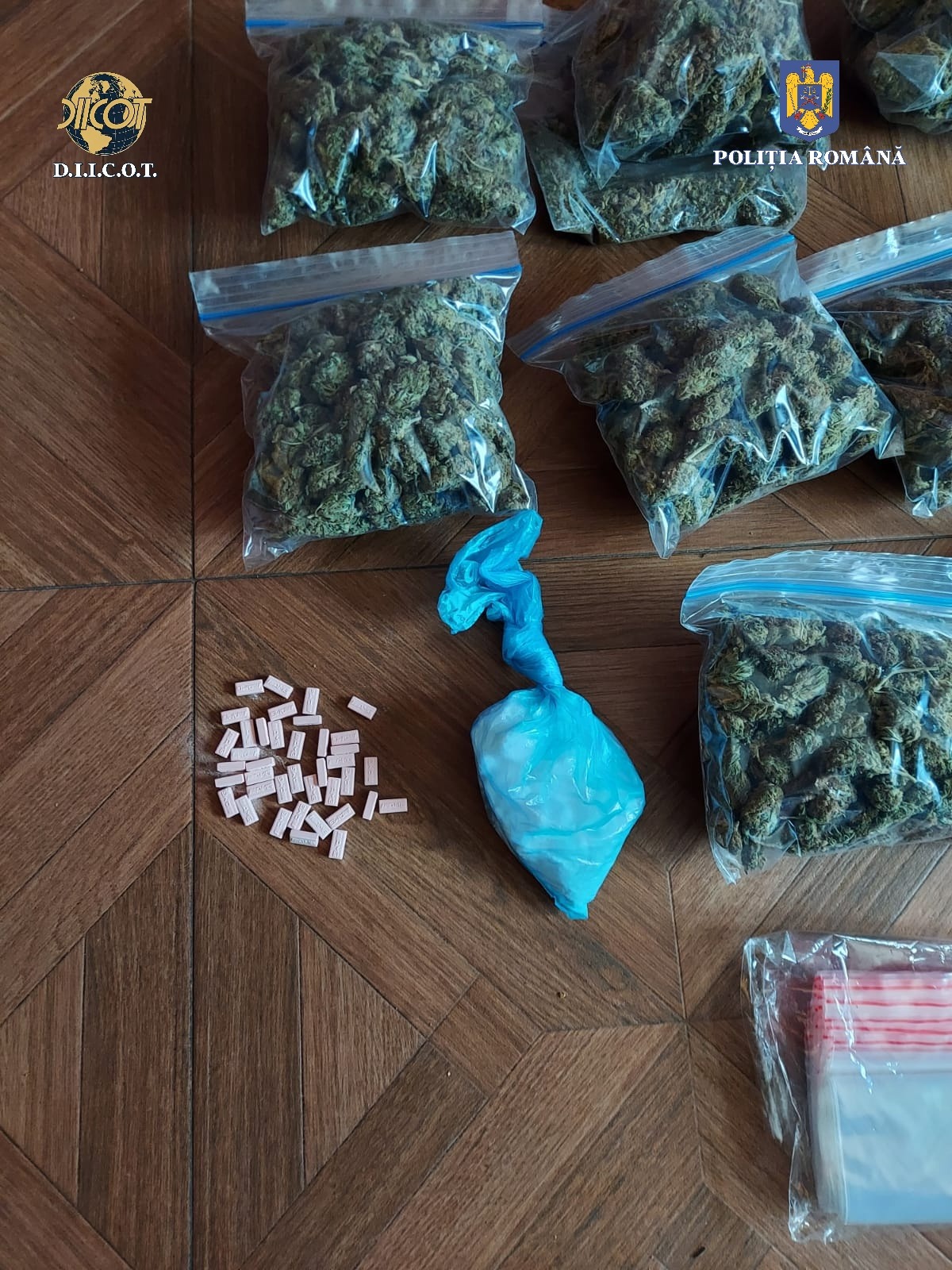 În urma perchezițiilor, polițiștii au descoperit 14 pastile ce conțin MDMA, 3 grame de cocaină, 5 grame de canabis, 2 grame de produse susceptibile de a avea efecte psihoactive, 3.040 USD, 150 de Euro, 1.800 de lei, cântare de înaltă precizie, aparatură pentru vidat și telefoane mobile.
