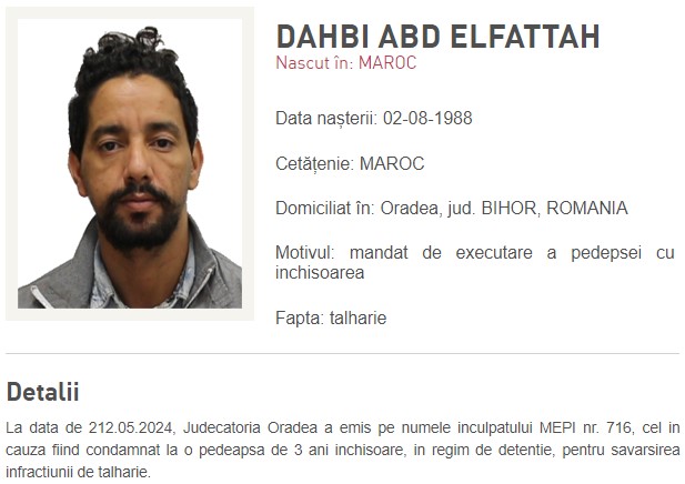 Marocanul Dahbi Abd Elfattah a fost localizat trei săptămâni mai târziu cu ajutorul mijloacelor tehnice de supraveghere. Și-a recunoscut fapta, dar a spus că nu-și amintește cum a procedat, fiind într-o stare avansată de ebrietate. În luna aprilie a acestui an, agresorul a fost condamnat de Judecătoria Oradea la 3 ani de detenție, iar sentința a devenit definitivă prin neapelare. Dahbi Abd Elfattah nu s-a prezentat la proces și nici nu a fost de găsit pentru a fi dus la penitenciar, motiv pentru care a ajuns pe lista urmăriților național.