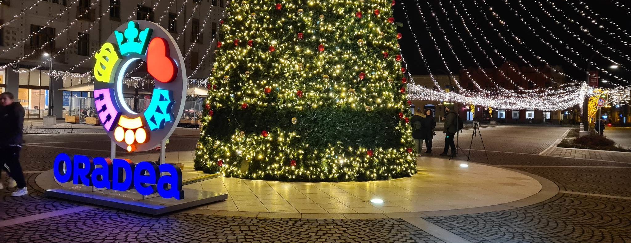 Zeci de globuri au fost furate din bradul amplasat în inima orașului Oradea.
