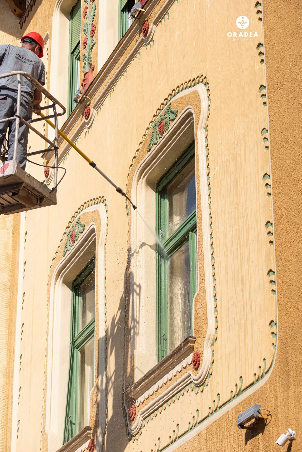 Primăria și Fundația de Protejare a Monumentelor Istorice din judetul Bihor testeată procedura de curățare a fațadelor restaurate din Centrul Istoric. Palatul Stern de pe Republicii 10 este proiectul pilot, datorită materialelor cu care s-a făcut reabilitarea.