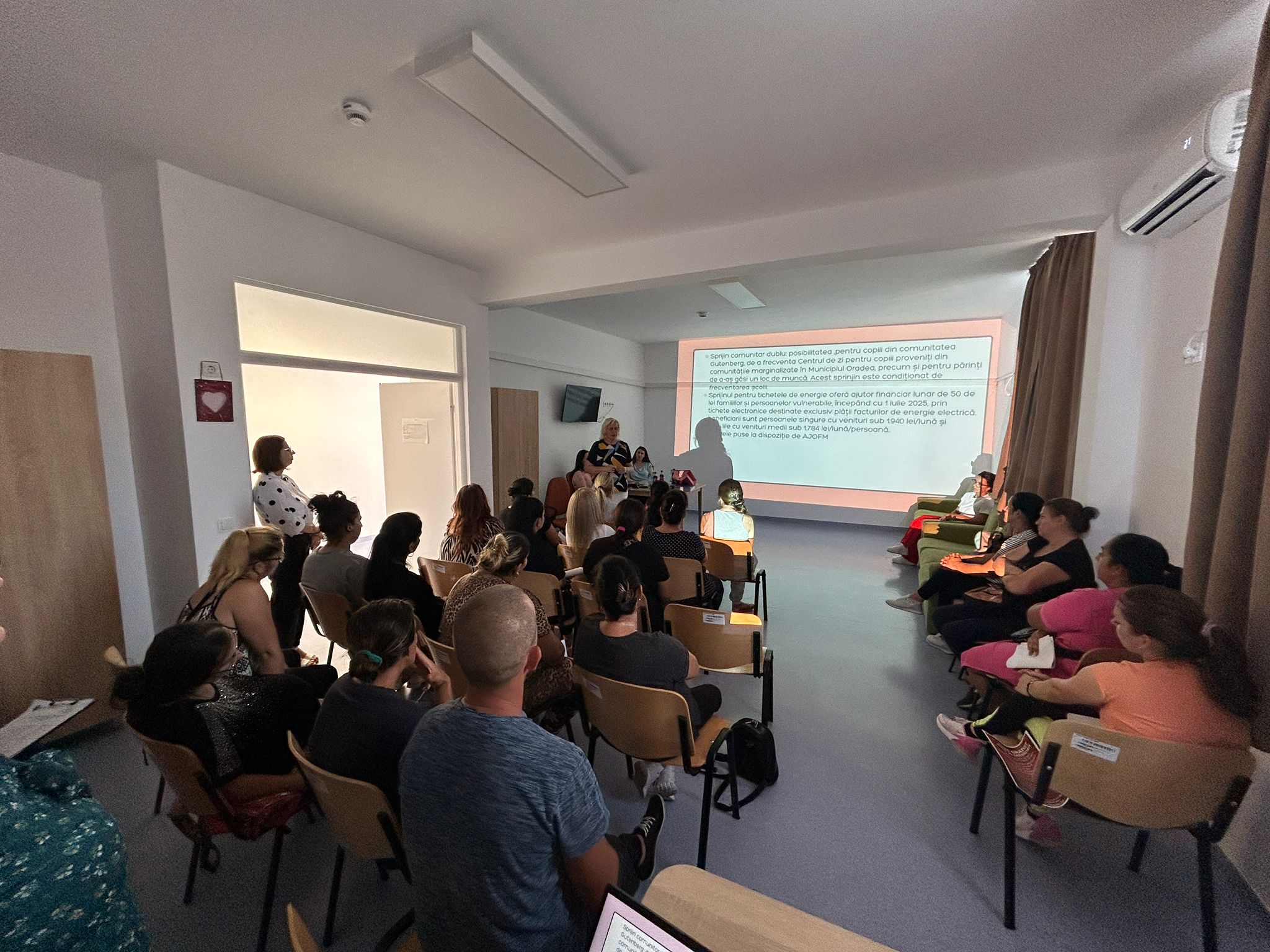 În cadrul întâlnirii susținute de echipa Centrului de Zi pentru copii din comunități marginalizate (strada Clujului, nr.188/A) – alcătuită din coordonator, educator, pedagogi sociali, asistent social și psiholog – părinții au aflat informații utile privind modalitățile de adaptare la programa educațională în noul an școlar, precum și detalii despre beneficiile sociale de care pot beneficia familiile, copiii și părinții.
