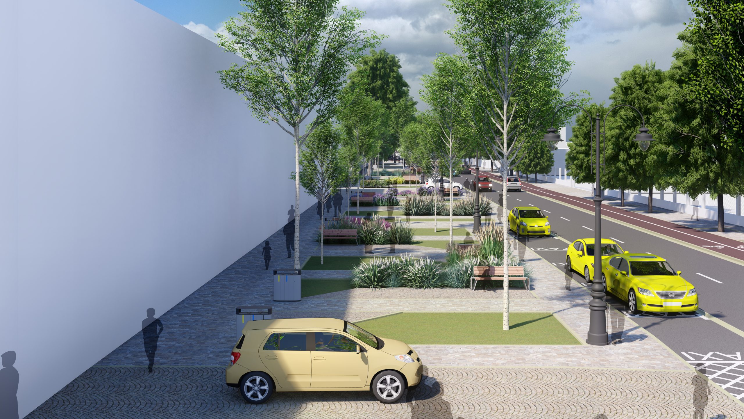– realizarea unei piste de biciclete de-a lungul străzii; – realizarea iluminatului public inteligent, corelat cu noile funcțiuni proiectate;
