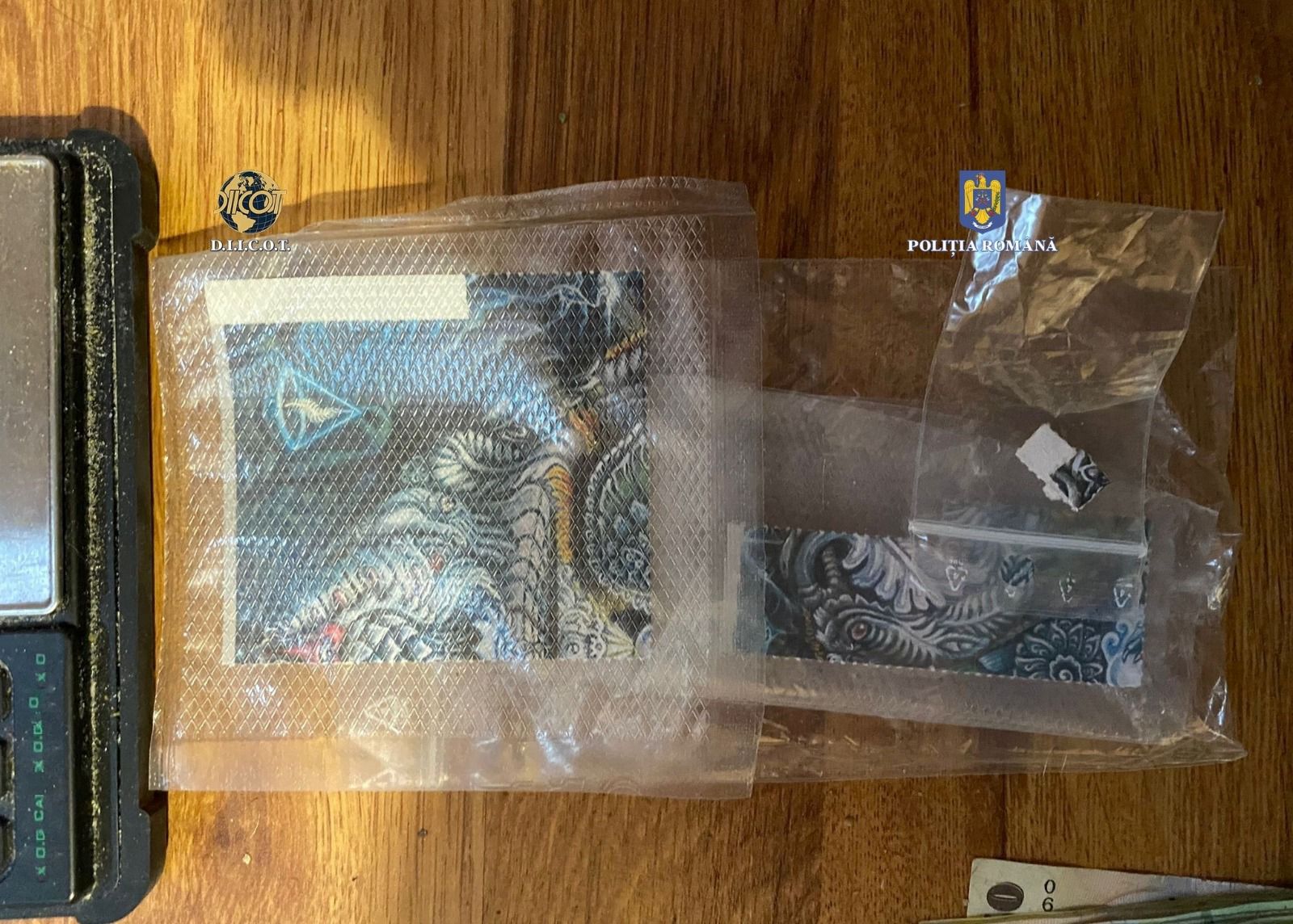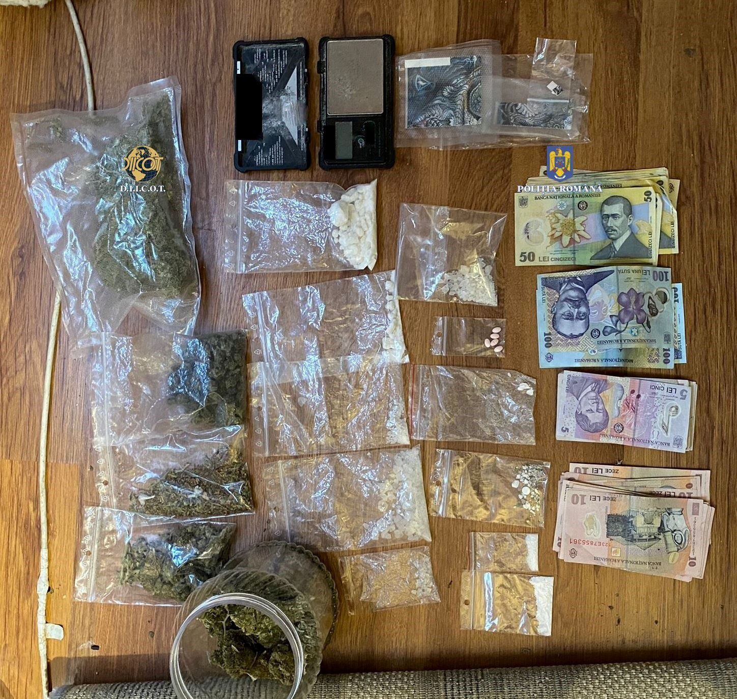 În cadrul perchezițiilor au fost descoperite și ridicate 230 de grame de cannabis, 128 de timbre LSD, 80 de grame de substanțe psihoactive, 5 comprimate ecstasy, 2.450 de lei, 3 cântare de înaltă precizie și un telefon mobil.