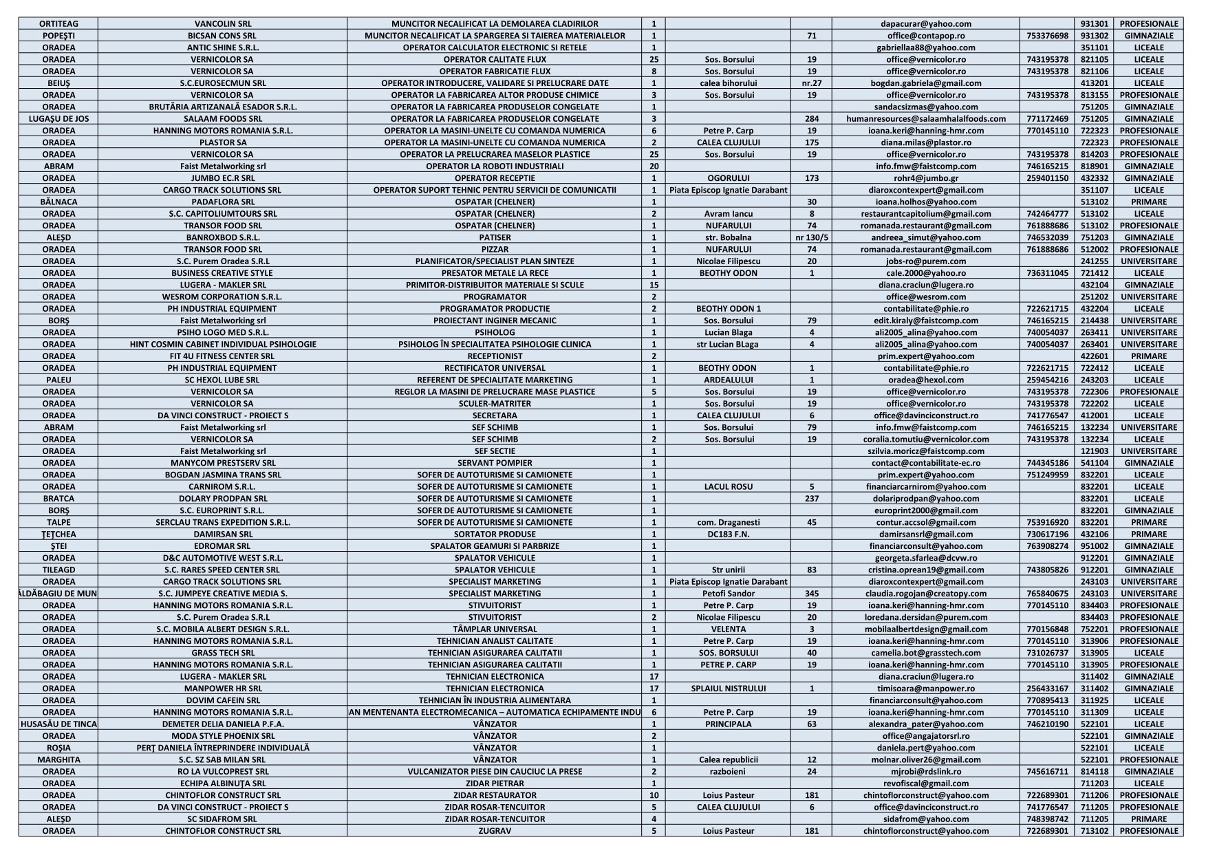 Cea mai bogată ofertă pentru persoanele care au studii superioare se adresează inginerilor de diferite specializări: ingineri construcții civile și industriale, ingineri sistem info, inginer software, ingineri electroniști, ingineri proiectanți, ingineri mecanici, ingineri producție, etc. Tot pentru studii superioare mai există oferte de angajare pentru contabili, specialiști marketing, șefi de schimb, programatori, planificatori, manageri de zonă, inspectori resurse umane, etc. Multe dintre posturile din baza de date a AJOFM Bihor vor fi oferite de companiile prezente la Târgul locurilor de muncă Oradea Job Expo, eveniment ce va avea loc vineri, 7 octombrie 2022, sub cupola Era Shopping Park.