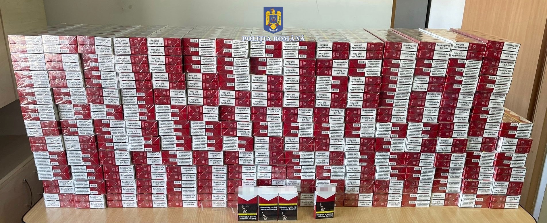 „În urma efectuării controlului autovehiculului, polițiștii au descoperit în partea din spate a acestuia, în două cutii de carton, 34.340 de țigarete (1.717 pachete de țigarete) nemarcate legal. Întreaga cantitate de țigarete nemarcate a fost ridicată în vedere confiscării”, transmite comisar-șef IPJ Bihor, Alina Fărcuța.