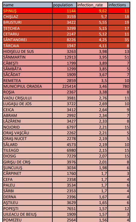 Numărul cazurilor active a ajuns, miercuri dimineața, la 1.562. Șapte localități bihorene înregistrează o incidență de peste 4 la mia de locuitori, în timp ce în Spinuș au fost introduse restricțiile de noapte.