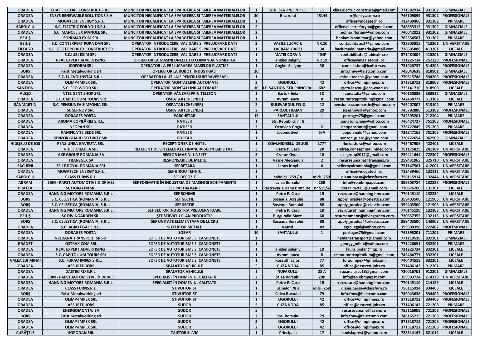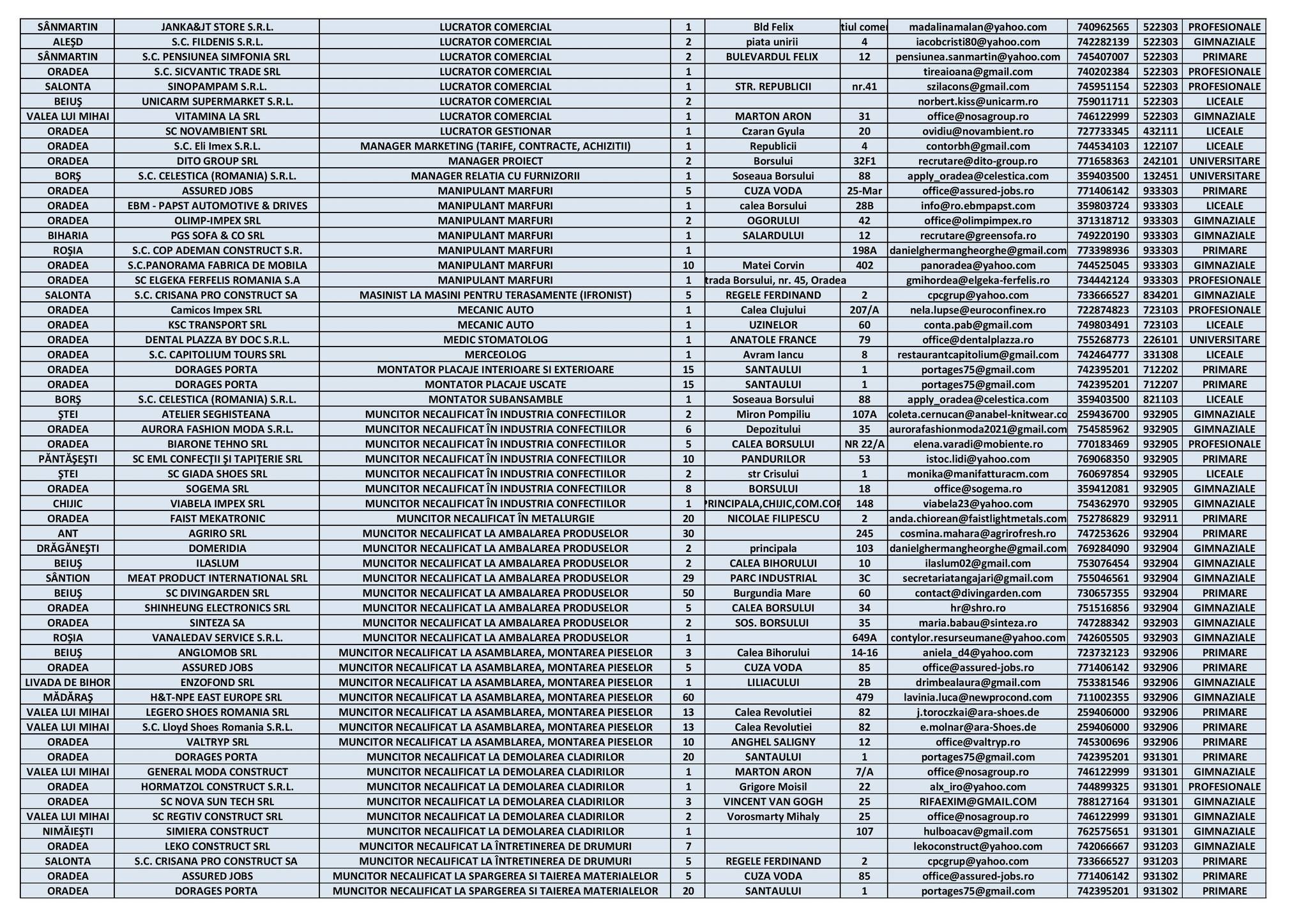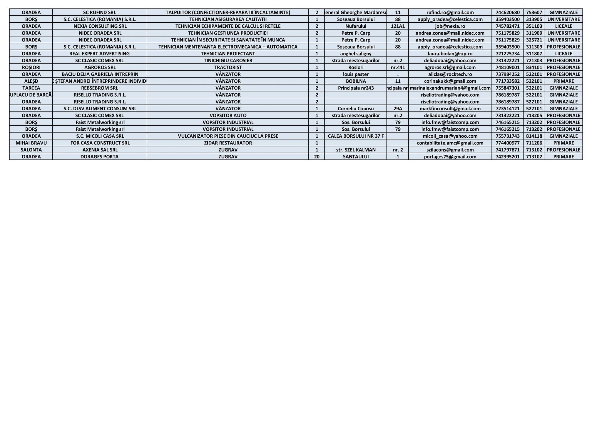 Mai multe detalii despre oferta de locuri de muncă a firmelor din Bihor pot fi obținute de la AJOFM Bihor, Oradea, Str. Transilvaniei nr. 14.