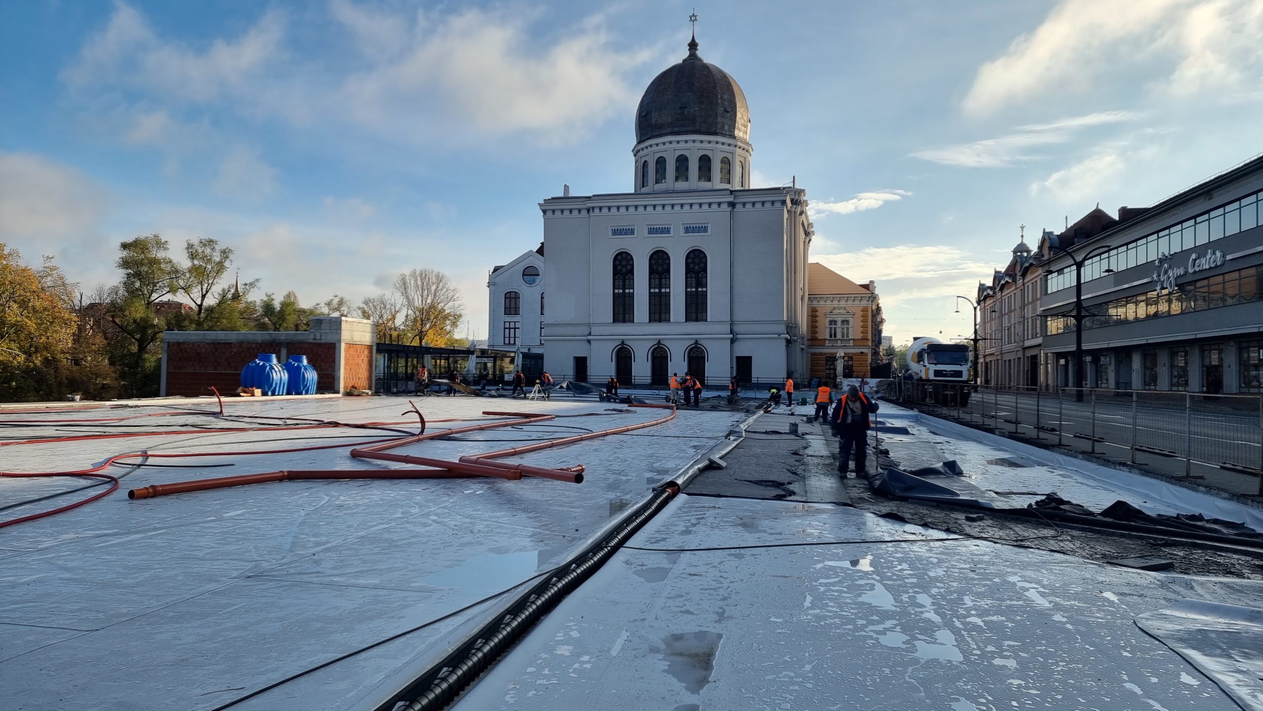 La Corpul C3, care va găzdui un spațiu comercial realizat din structură ușoară metalică, este finalizată partea de hidroizolație a acoperișului și lucrările de montare a structurii de rezistență. Totodată, pe amplasamentul delimitat de strada Independenței, malul Crișului Repede, Sinagoga Sion și Podul Sf. Ladislau au fost realizate instalațiile de irigații inclusiv partea de hidroizolație, urmând ca miercuri, 22 noiembrie să se toarne șapa.