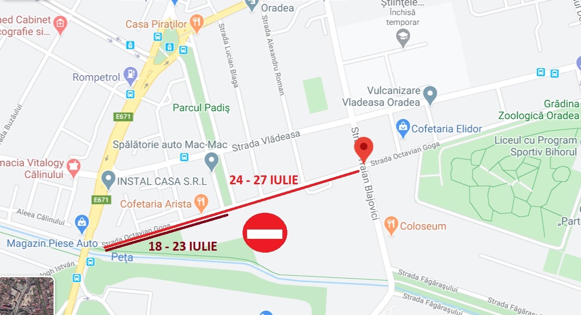 „Comisia de circulație a aprobat astăzi, 18 iunie, la solicitarea SC Drumuri Bihor SA, închiderea circulației rutiere pe strada Octavian Goga, tronsonul cuprins între strada Padișului și Calea Aradului, de azi până în 23 iunie 2020 și închiderea circulației rutiere pe tronsonul cuprins între strada Traian Blajovici și Calea Aradului, din data de 24 iunie până în data de 27 iunie 2020, în vederea executării lucrărilor de reabilitare a carosabilului.