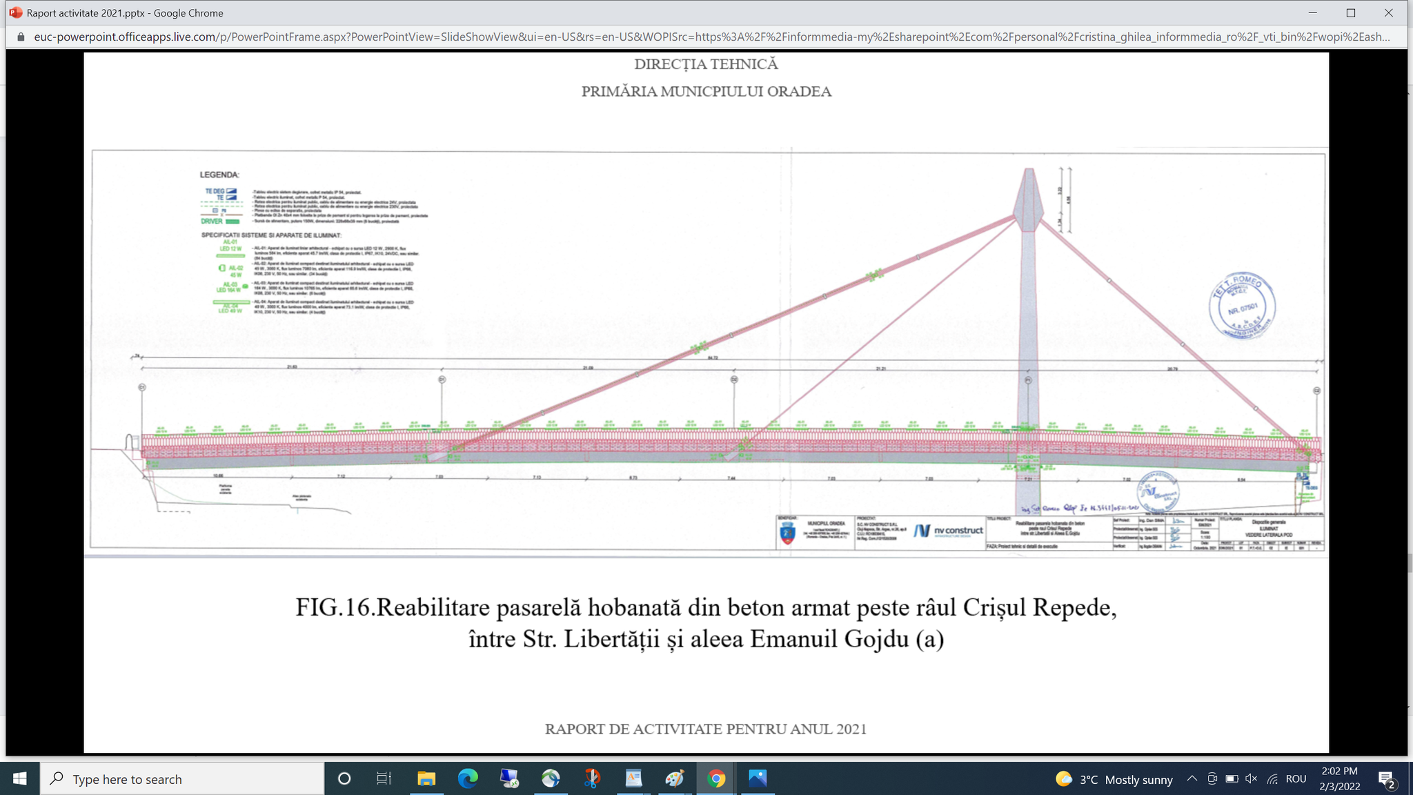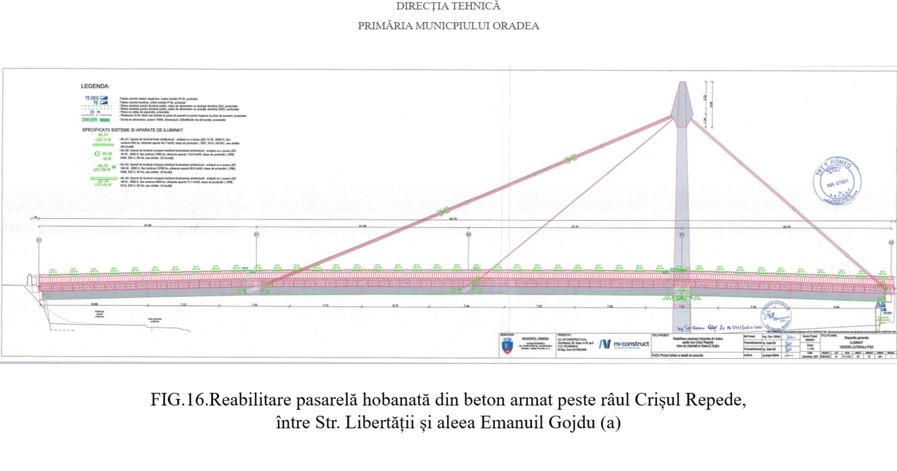 Răzvan Marchiș, șeful Direcției Tehnice spune că pasarela, probabil cea mai veche din țară de felul acesta – pasarelă hobanată, prezintă uzură avansată la nivelul pilonilor, a toroanelor metalice, dar și la grindă și parapet.