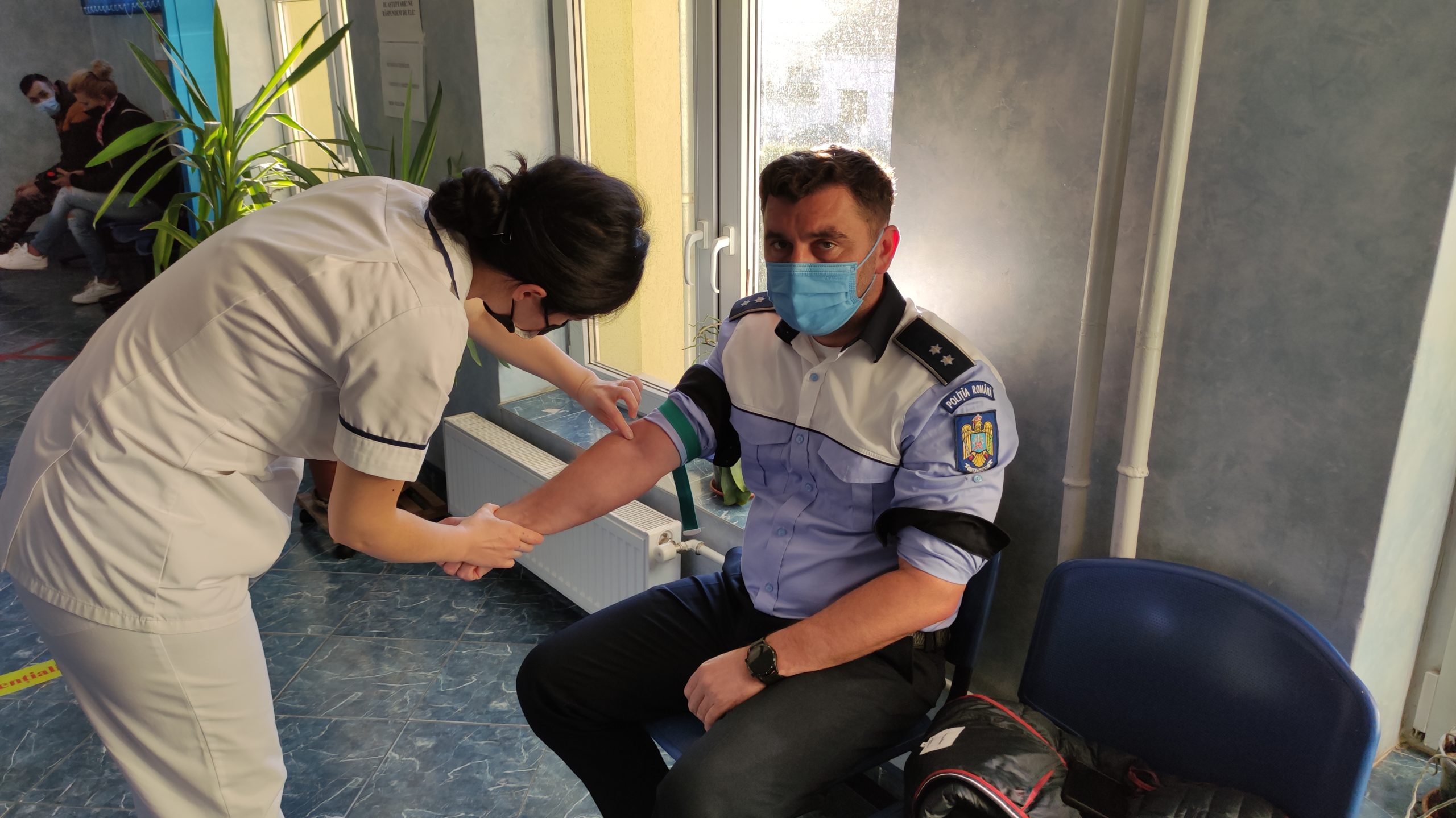 La Centrul de Transfuzie Sanguină din Oradea, situat pe strada Louis Pasteur, polițiștii bihoreni s-au organizat în ture, începând cu ora 07:00, conform programărilor.