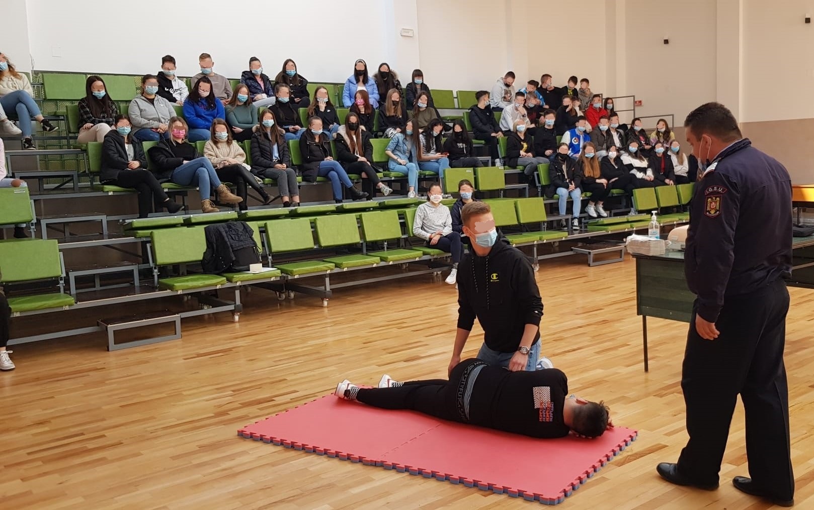 De asemenea, pompierii militari au familiarizat elevii și cadrele didactice cu noţiunile de bază în acordarea primului ajutor în caz de leziuni minore, învățându-i totodată manevra Heimlich și modul de efectuare a manevrelor de resuscitare cardio-pulmonară, prin intermediul exemplificărilor şi exerciţiilor practice.