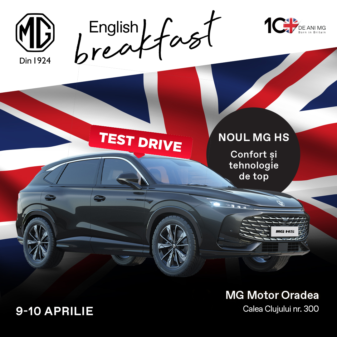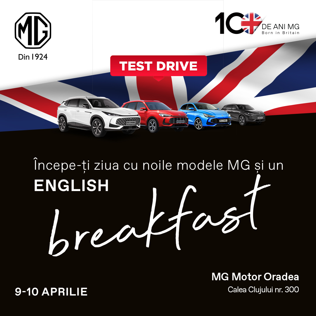 Începem diminețile cu un mic dejun englezesc și continuăm cu sesiuni de test-drive, unde vei descoperi noile modele MG – elegante, inovative și sustenabile. În plus, vei avea ocazia să vezi în premieră MG Cyberster!