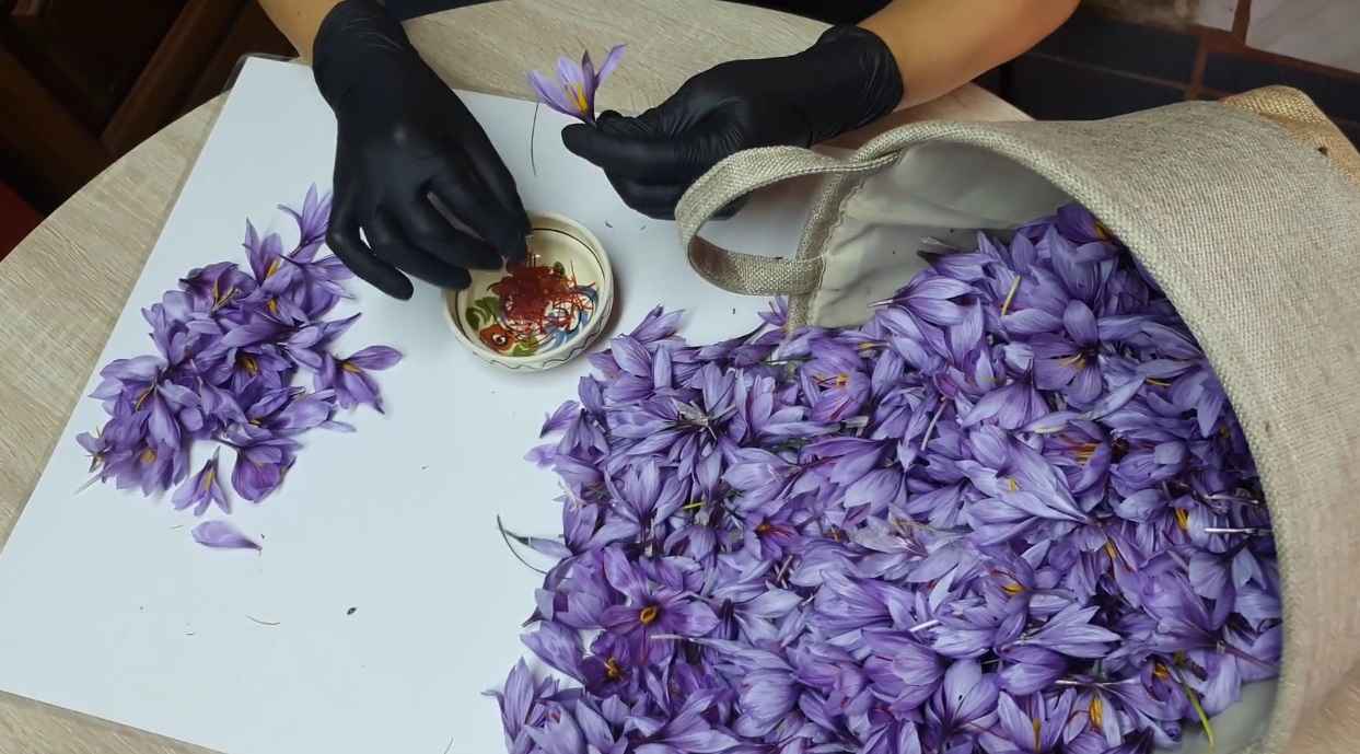 „Pentru un gram de șofran sunt necesare aproximativ 150 de flori, deci de separat 450 de stigmate (fiecare floare are 3 stigmate). Pentru un kilogram sunt necesare aproximativ 150.000 de flori, echivalentul a 450.000 de stamine. Este multă muncă manuală aici iar pentru fiecare gram de stigmate culese, la final, în urma procesului de uscare, acesta pierde undeva la 80% din greutatea inițială. Asta înseamnă că la 100 de grame de stigmate proaspăt culese, după uscare, rămân aproximativ 20 de grame“, declară cultivatorul.