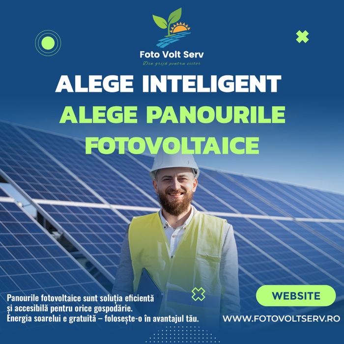 Alege o soluție modernă pentru reducerea costurilor și transformă energia solară într-un avantaj real. Informatii suplimentare pe www.fotovoltserv.ro sau https://www.facebook.com/p/FotoVolt-Serv-61550489721862/