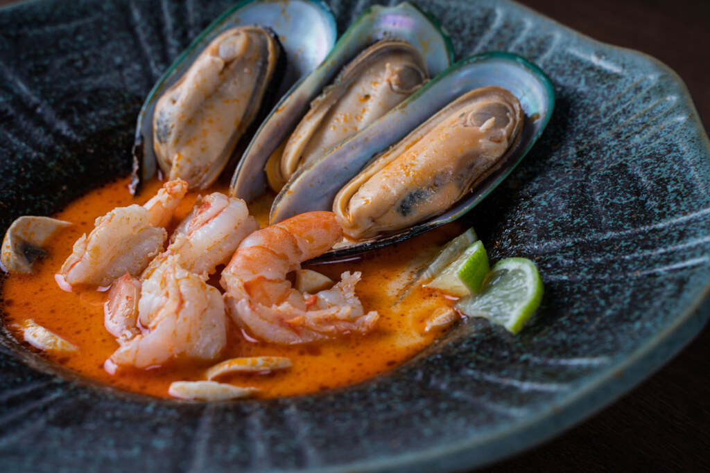 Supă Tom Yum cu scoici aduse din Noua Zeelanda