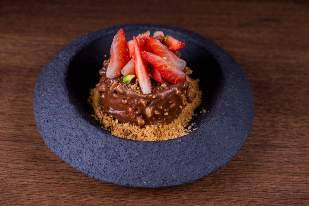 Strawberry Moon, desert cu ganaș de căpșuni și ciocolată neagră și albă