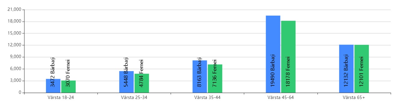 Cea mai slabă prezență se înregistrează în rândul tinerilor, începând de la categoria de vârstă de 35-44, cu aproape 3.000 de votanți, numărul acestora descrește. La categoria de vârstă de 25-34 de ani, au fost înregistrați sub 2.000 de votanți, iar la categoria 18-24, sub 1.000 votanți.