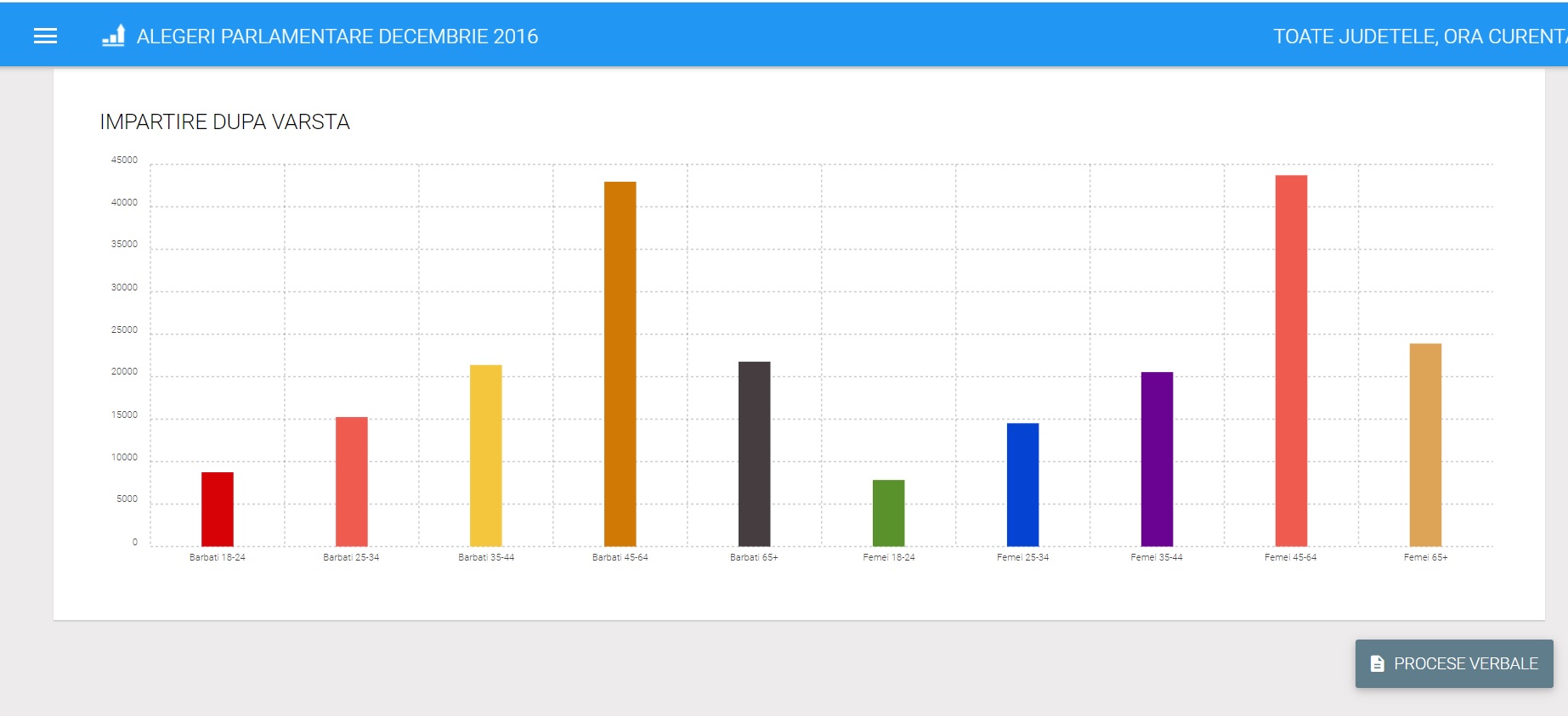 Situația nu este inedită. Un grafic similar a fost prezentat și la alegerile parlamentare din 2016, când s-a observat o prezență scăzută în rândul tinerilor, iar cei mai activi au fost cei din categoria 45-64.
