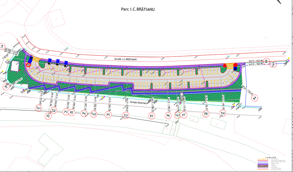 În cadrul proiectului se va realiza un zid de sprijin către strada Olteniei. Din totalul parcărilor, 6 locuri vor fi rezervate persoanelor cu dizabilităţi.