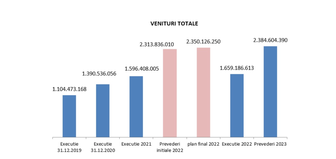 „Veniturile bugetului consolidat înregistrează o creștere față de valorile realizate în anul precedent cu 46% pe fondul creșterii sumelor estimate a fi încasate din cote defalcate din impozitul pe venit, a finanțărilor nerambursabile europene, a sumelor prevăzute a fi trase din contractelor de credit încheiate. În anul 2023, s-a estimat o creștere a veniturilor proprii cu 9% față de încasările din anul precedent, ca rezultat în principal al creșterii sumelor încasate din Cota defalcată din impozitul pe venit cuvenită autorităților publice locale”, transmite municipalitatea.