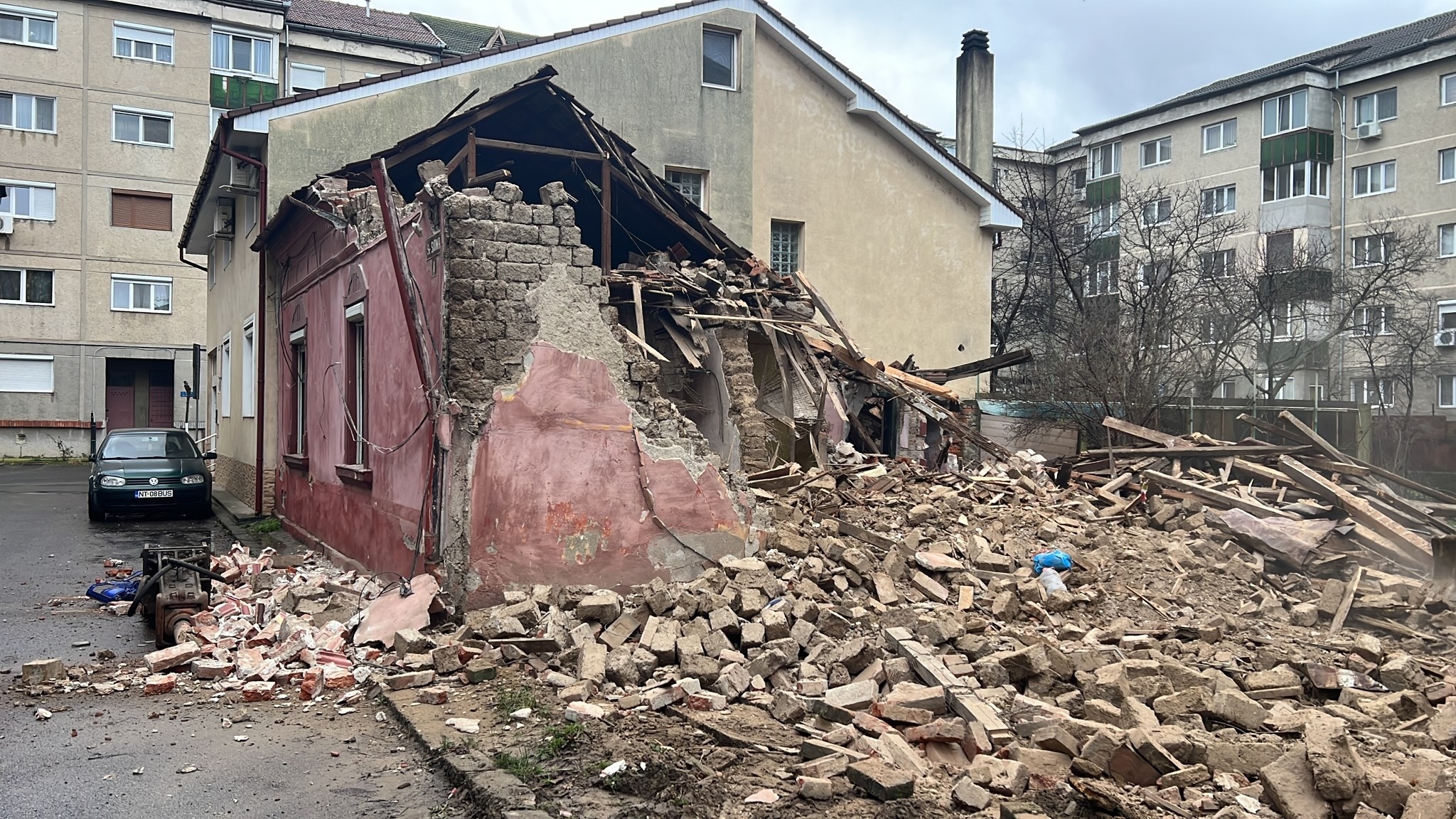 Pe Slatinei a fost demolata casa cu etaj din caramida