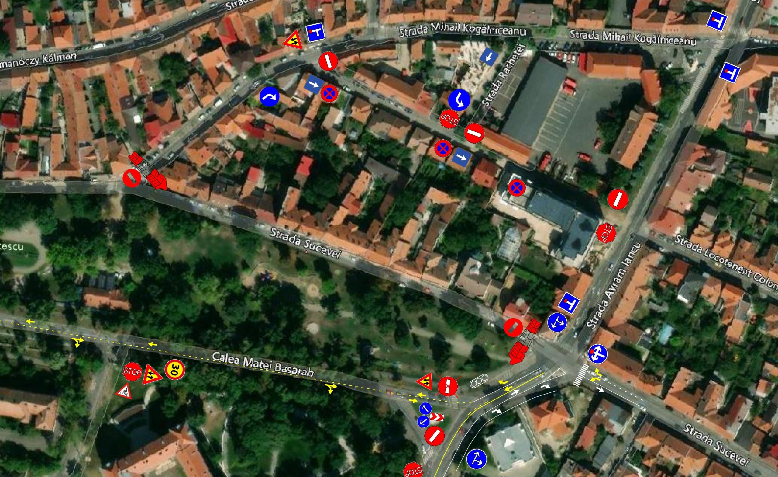 În perioada menționată mai sus, traficul va fi deviat pe Calea Matei Basarab, care va deveni stradă cu sens dublu, pe lângă Parcul Bălcescu. Ca urmare a acestui fapt, de pe strada Evreilor Deportați, din intersecția cu strada Avram Iancu se va putea vira la stânga, către Calea Matei Basarab, respectiv către Calea Armatei Române. Strada Demetriu Teiușanu va deveni sens unic dinspre strada Mihail Kogălniceanu înspre strada Avram Iancu, iar strada Rachetei rămâne sens unic dinspre strada Kogălniceanu înspre strada Teiușanu.