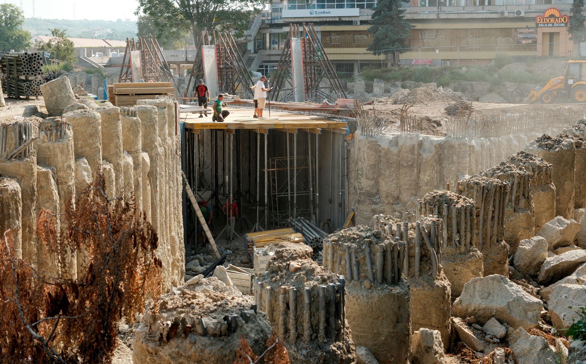 În momentul de față, la pasajele 2,3 și 4 sunt finalizate radierele, pereții și inclusiv plăcile. Se lucrează la armarea plăcii de la pasajul 5, aici radierele și o parte din pereți sunt finalizate.