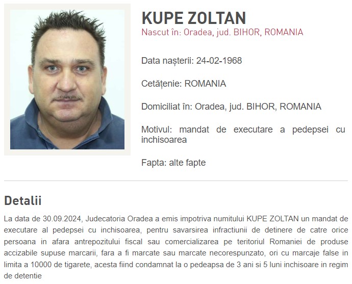 Bărbatul nu a fost de găsit pe 30 septembrie, când Curtea de Apel Oradea a pronunțat sentința definitivă în cazul său, astfel că acum este căutat în toată țara.
