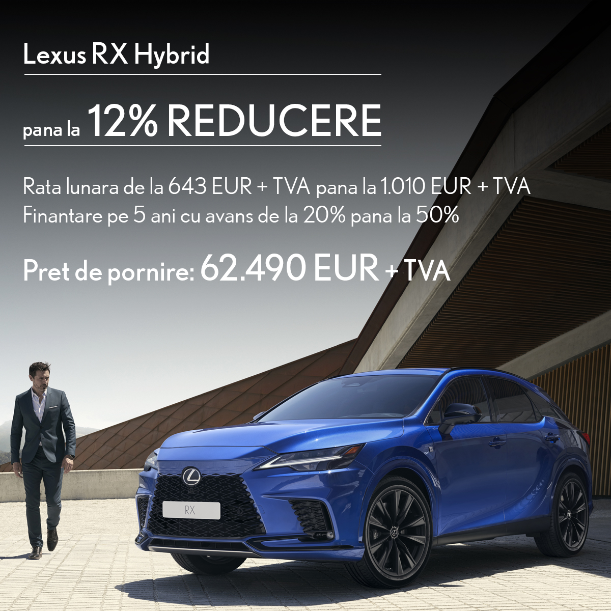 -Lexus RX Hybrid, acum, de la 62.494 EUR + TVA, cu o rată lunară de la 643 EUR + TVA până la 1.010 EUR + TVA!**