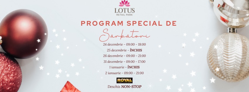- 26 decembrie: ÎNCHIS (Singurul retailer care închide și a doua zi de Crăciun)