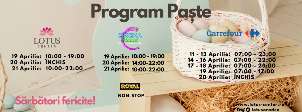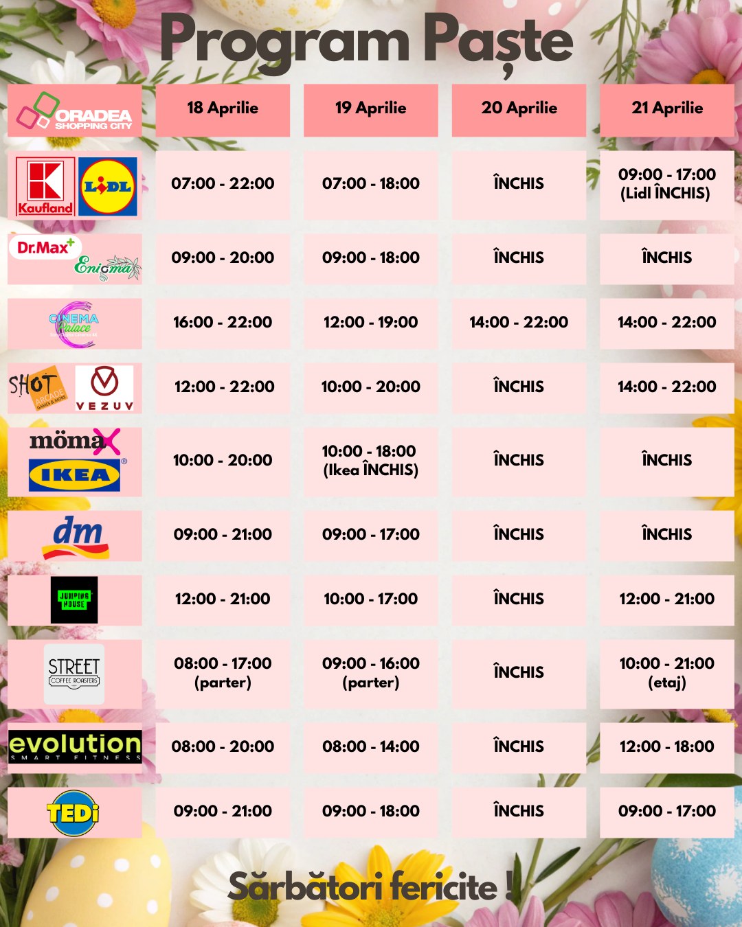 - luni, 21 aprilie – 9:00 – 16:00 sau 18:00