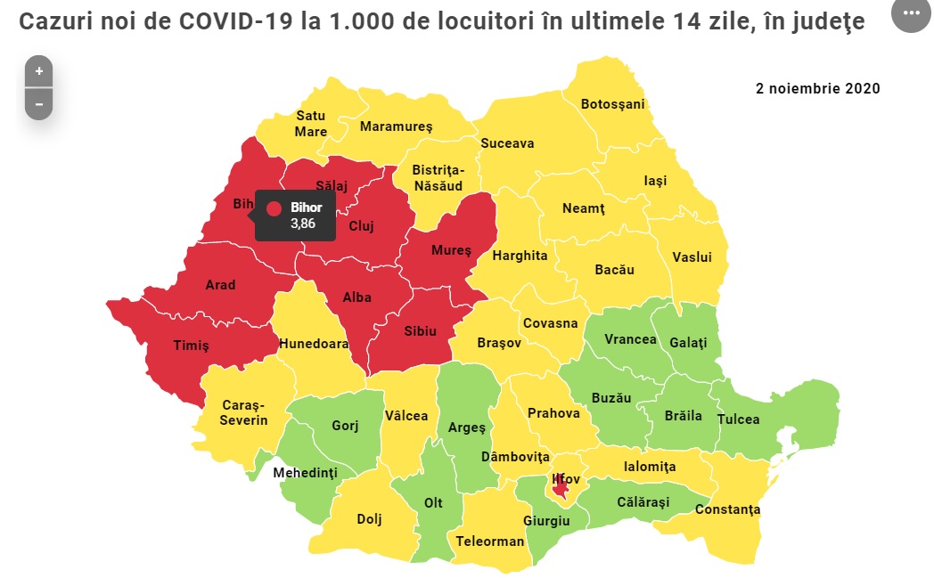 Amintim că județul Bihor a depășit pragul de 7.000 de infectări coronavirus, de la începutul pandemiei. În ultimele 24 de ore în Bihor au fost confirmate 193 de cazuri noi, iar rata de incidență a ajuns la 3,86‰.