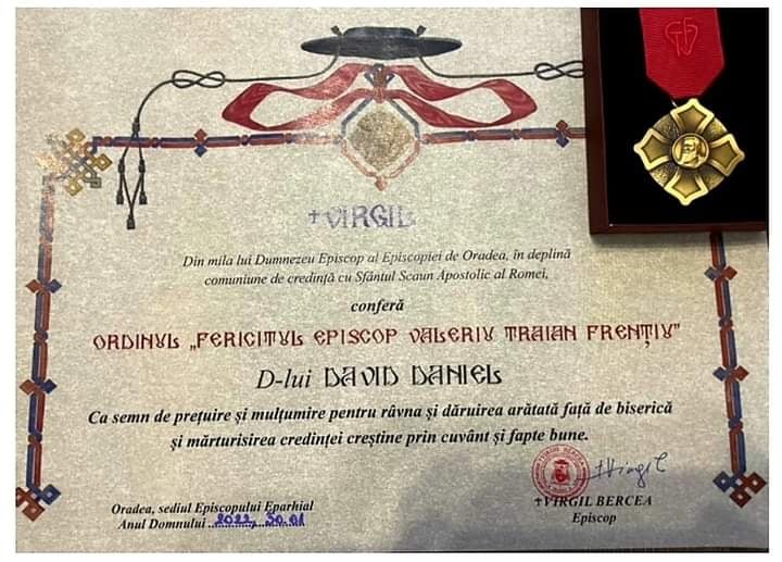PSS Virgil Bercea, episcopul greco-catolic de Oradea, l-a decorat pe rectorul Universității Babeș – Bolyai, prof. univ. dr. Daniel David, cu ordinul „Fericitul Episcop Valeriu Traian Frențiu”. Aceeași distincție i-a fost oferită și decanului Facultății de Teologie Greco-Catolică din cadrul aceleiași instituții, prof. univ. dr. Cristian Barta. Distincția le-a fost oferită celor doi profesori cu ocazia manifestărilor dedicate împlinirii a 230 de ani de la înființarea Seminarului Greco-Catolic din Oradea.